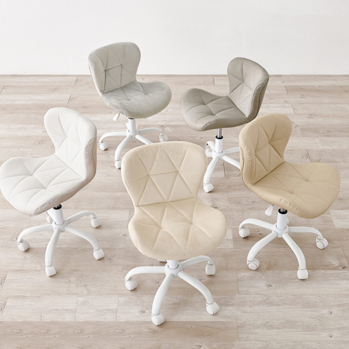 オフィスチェア 座面高41~49cm ベロア調 PVC生地 昇降式 回転 ( ワークチェア パソコンチェア 低め 高さ調節 キャスター付き 学習チェア 勉強椅子 チェア レザー調 ウレタン 360度回転 イス 椅子 いす 肘なし ) 【PVCベージュ】