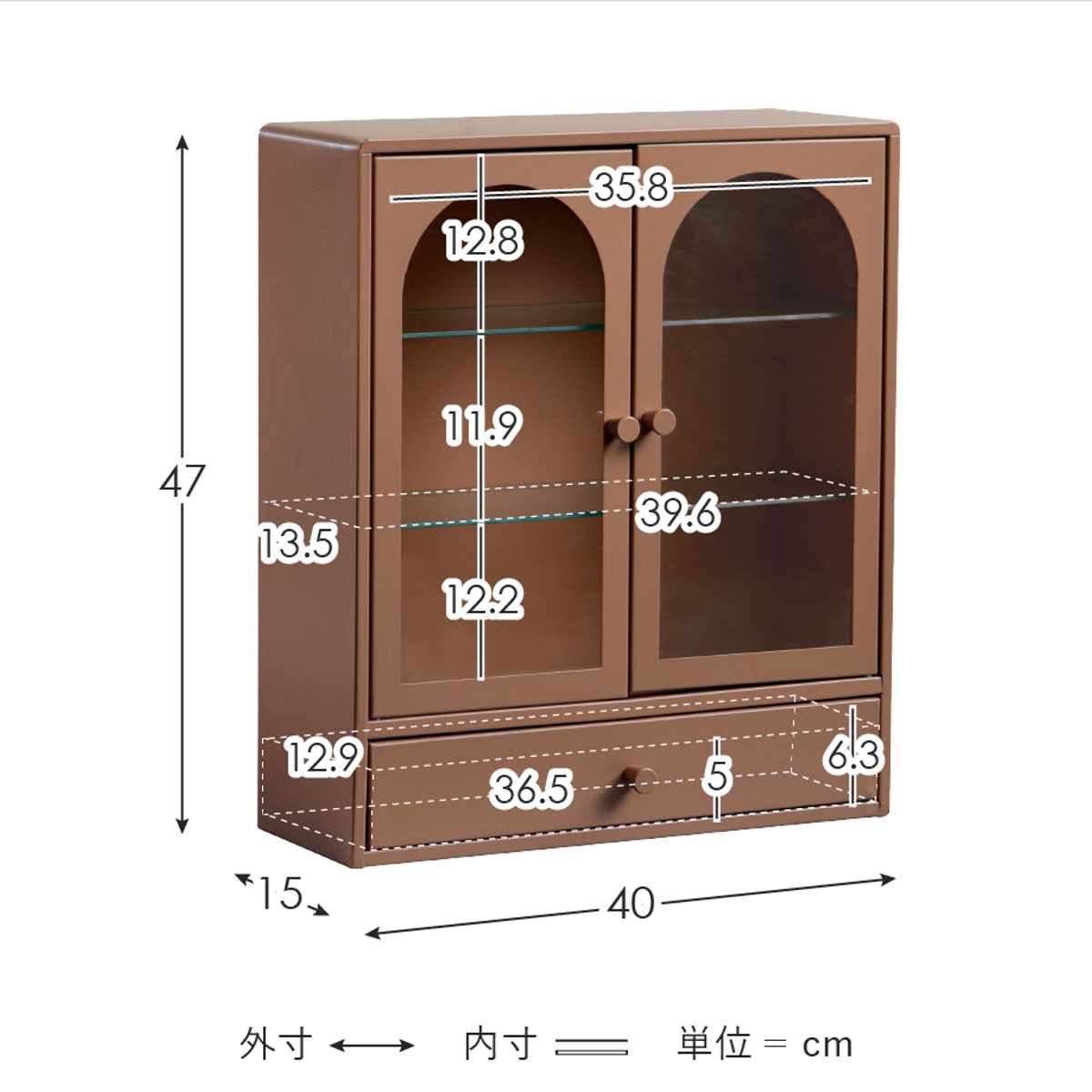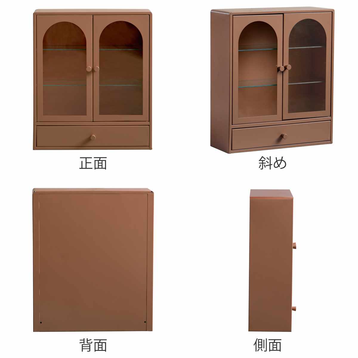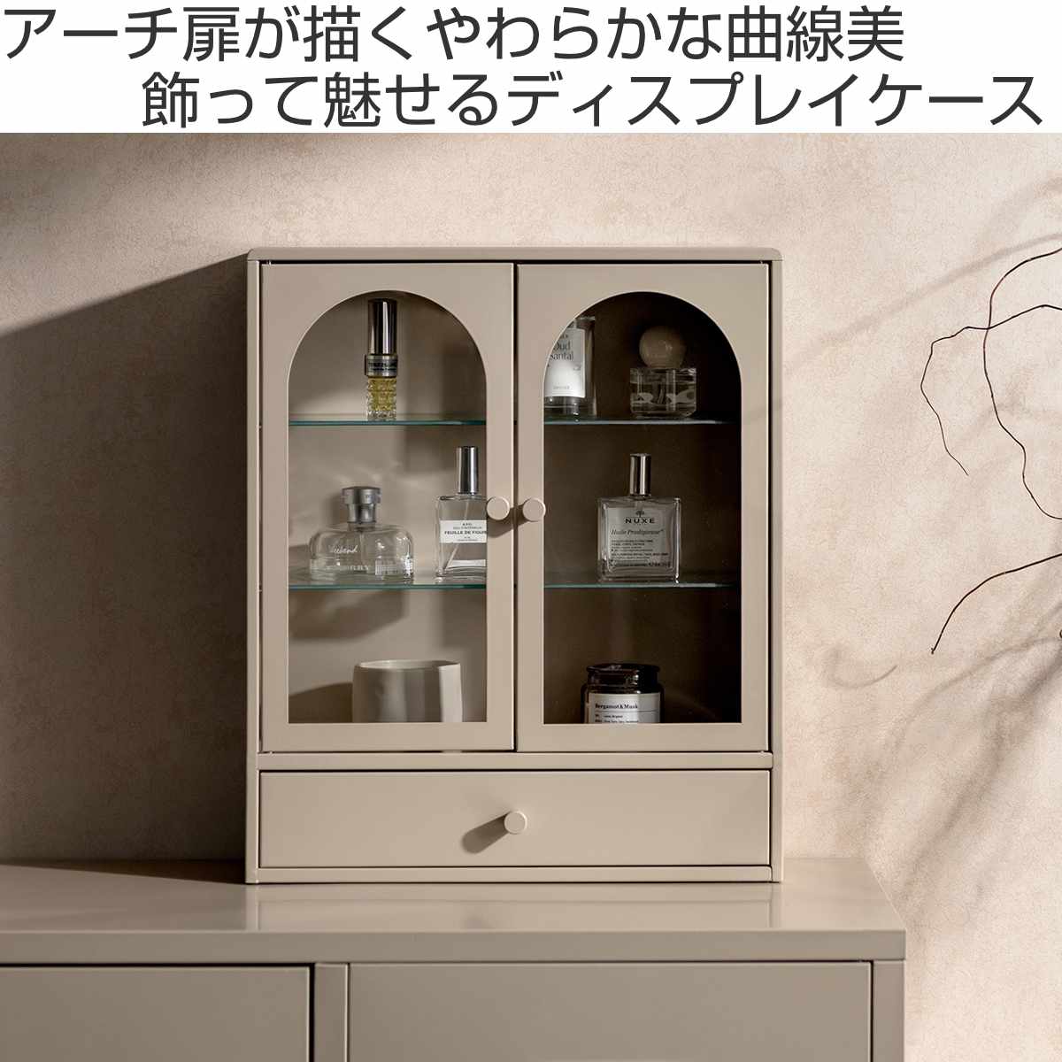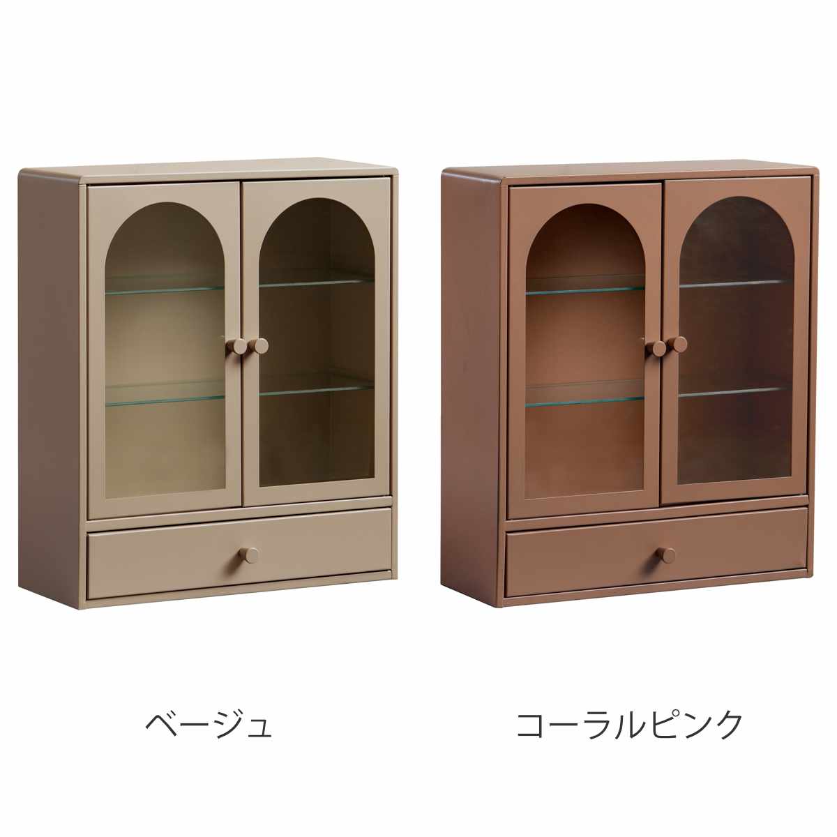 ディスプレイ収納 Muun 幅40cm 引出し ガラス スチール ( 卓上 コレクション ラック 棚 ディスプレイ ガラス扉 観音開き 両開き スチールラック アーチ扉 棚上 収納 展示 飾り棚 フィギュアケース 見せる収納 ) 【コーラルピンク】