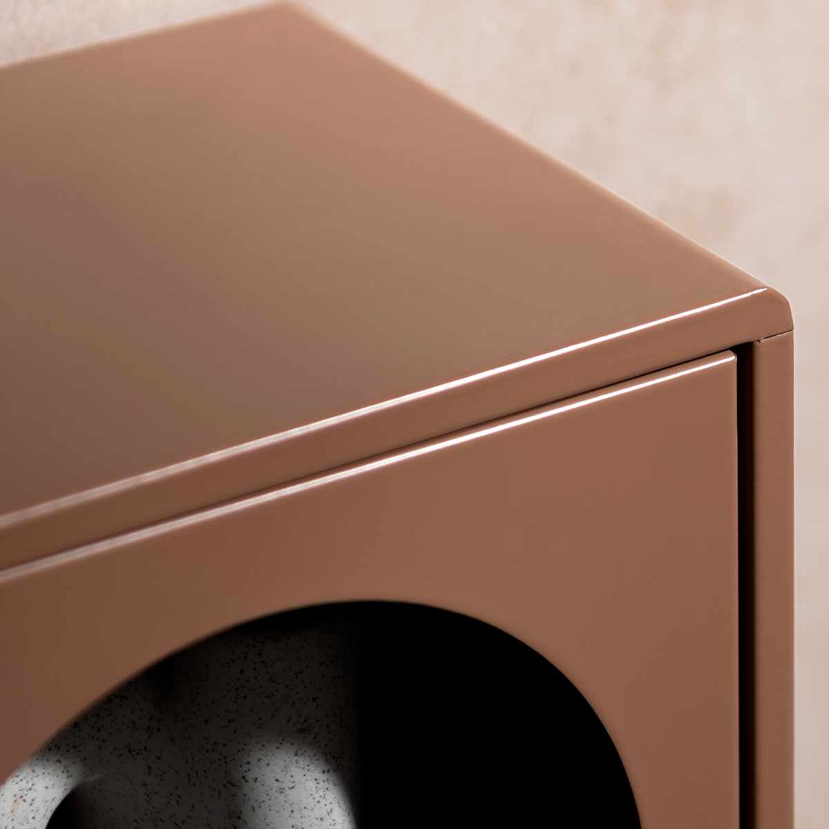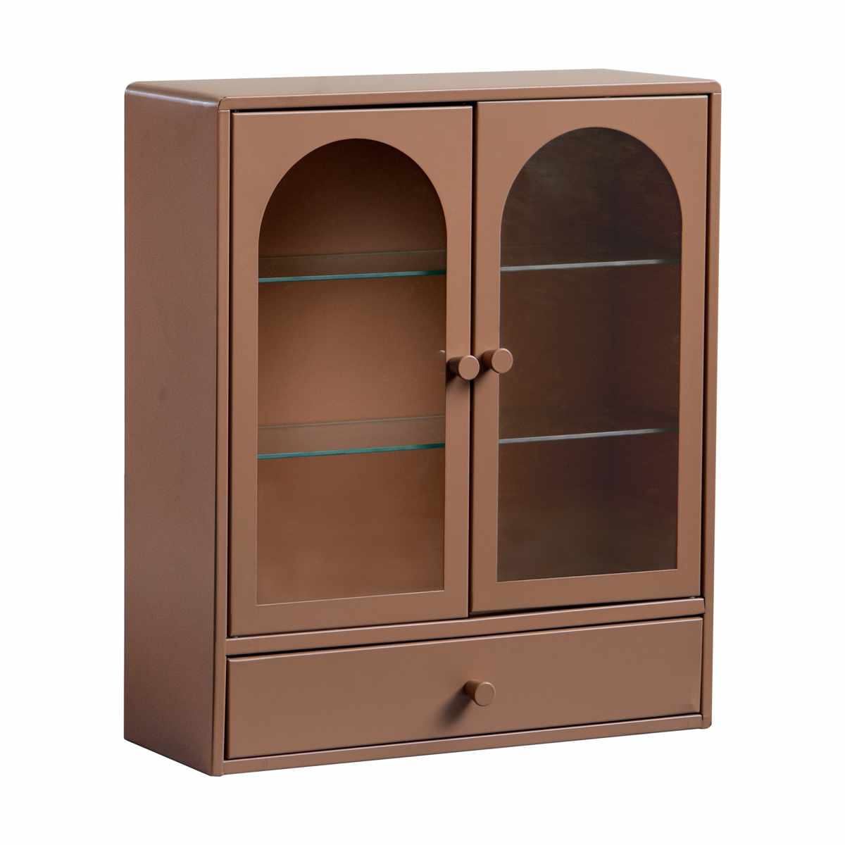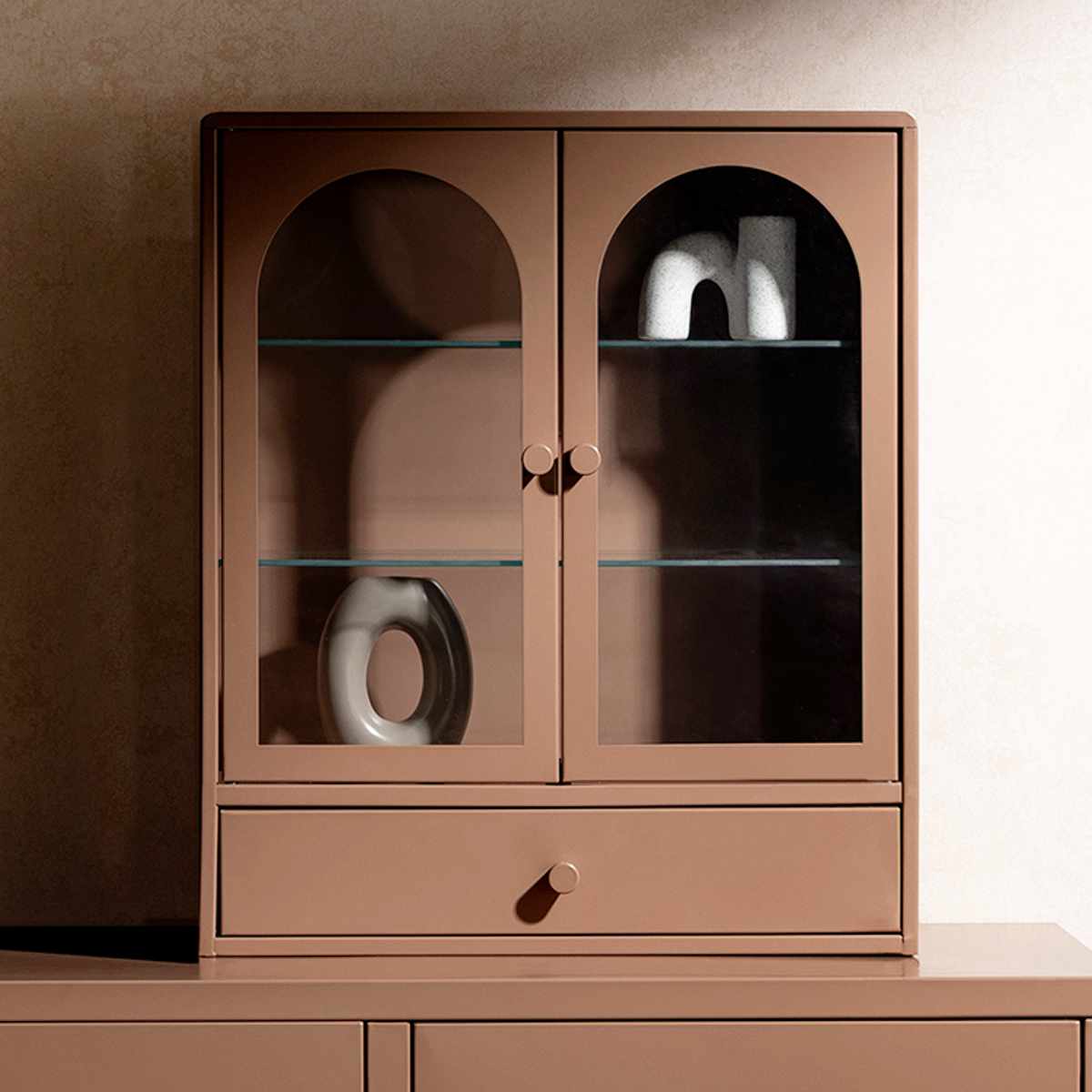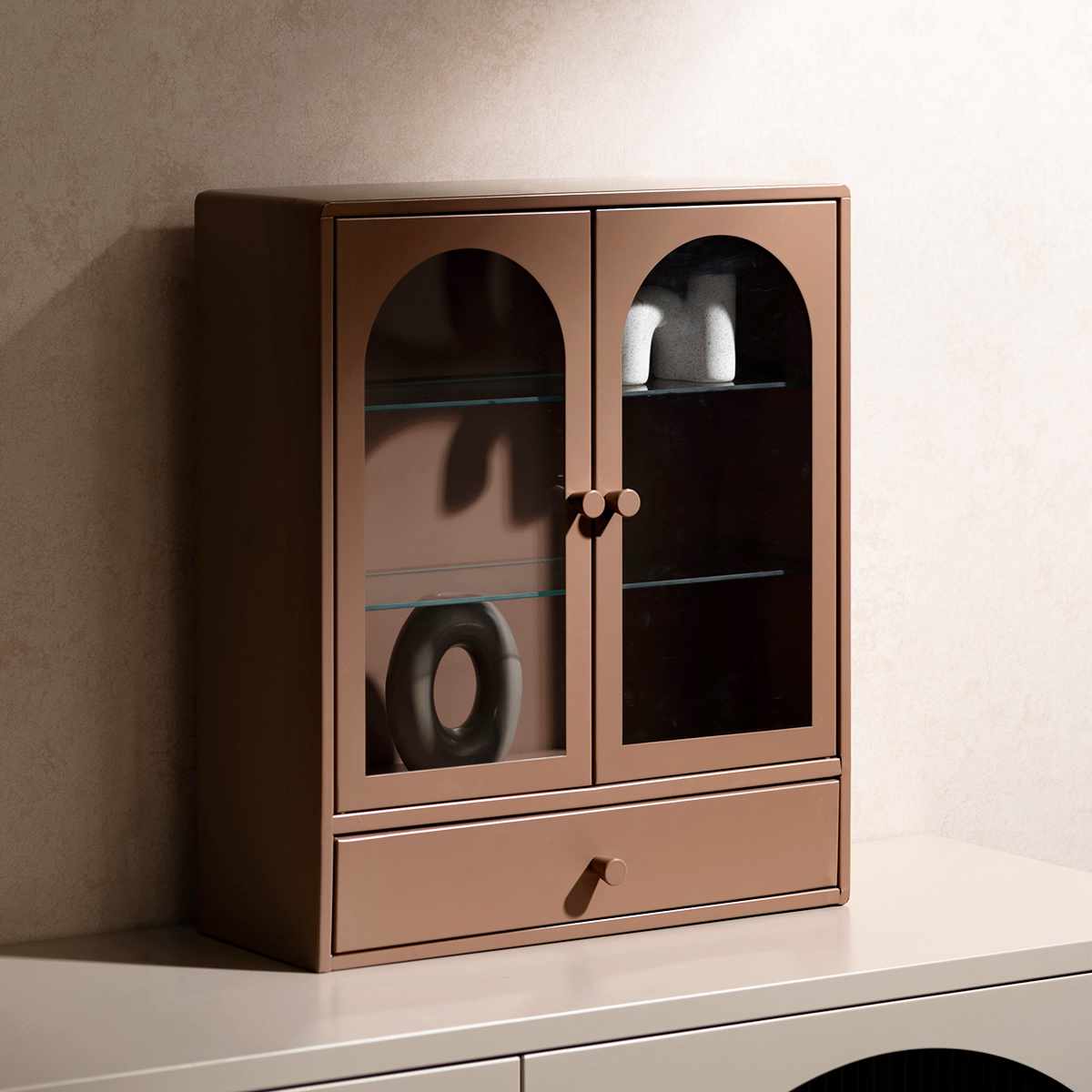 ディスプレイ収納 Muun 幅40cm 引出し ガラス スチール ( 卓上 コレクション ラック 棚 ディスプレイ ガラス扉 観音開き 両開き スチールラック アーチ扉 棚上 収納 展示 飾り棚 フィギュアケース 見せる収納 ) 【コーラルピンク】