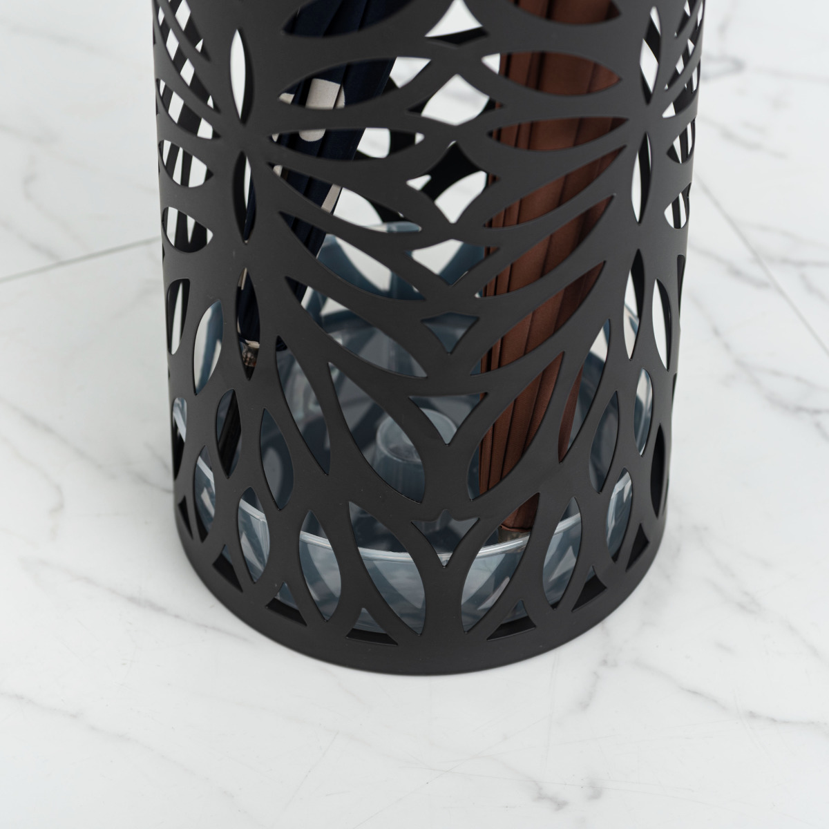 傘立て 高さ49cm リーフ柄 ( 傘たて 傘 収納 スチール おしゃれ 玄関収納 コンパクト スリム インテリア オブジェ 土間 土間収納 シューズクローク シンプル かわいい 掃除用具 長物収納 ) 【ブラック】