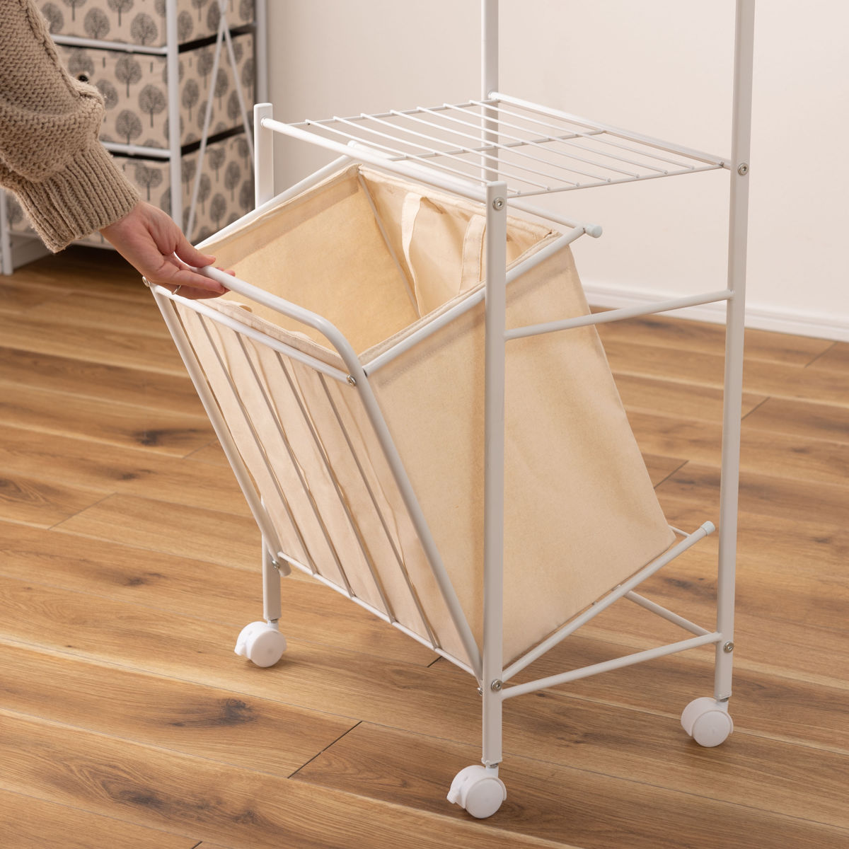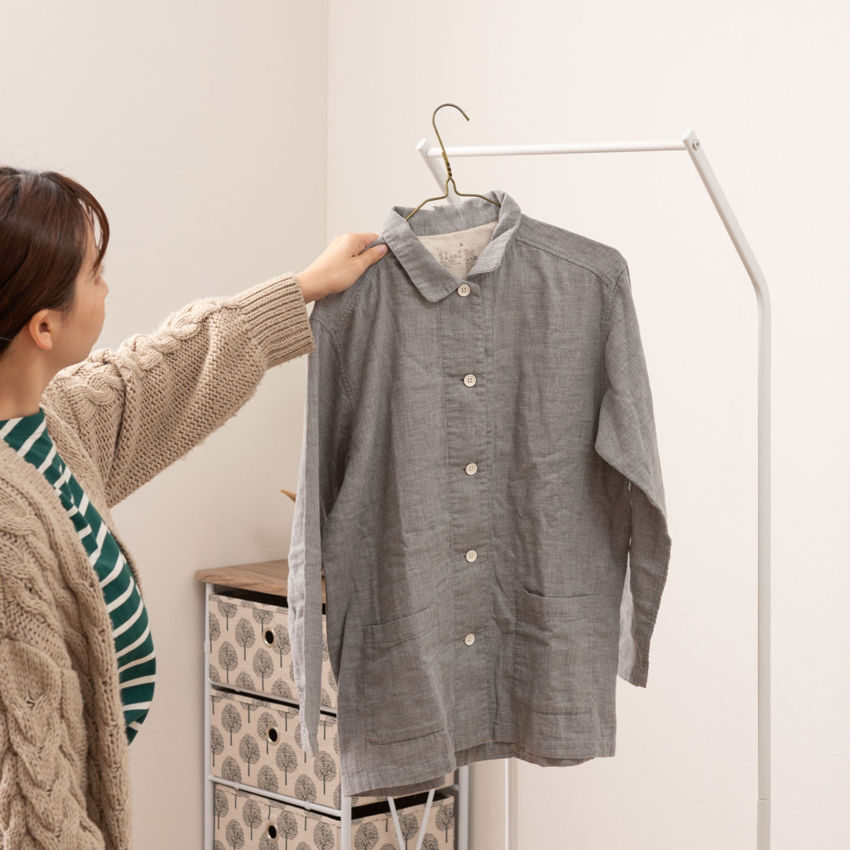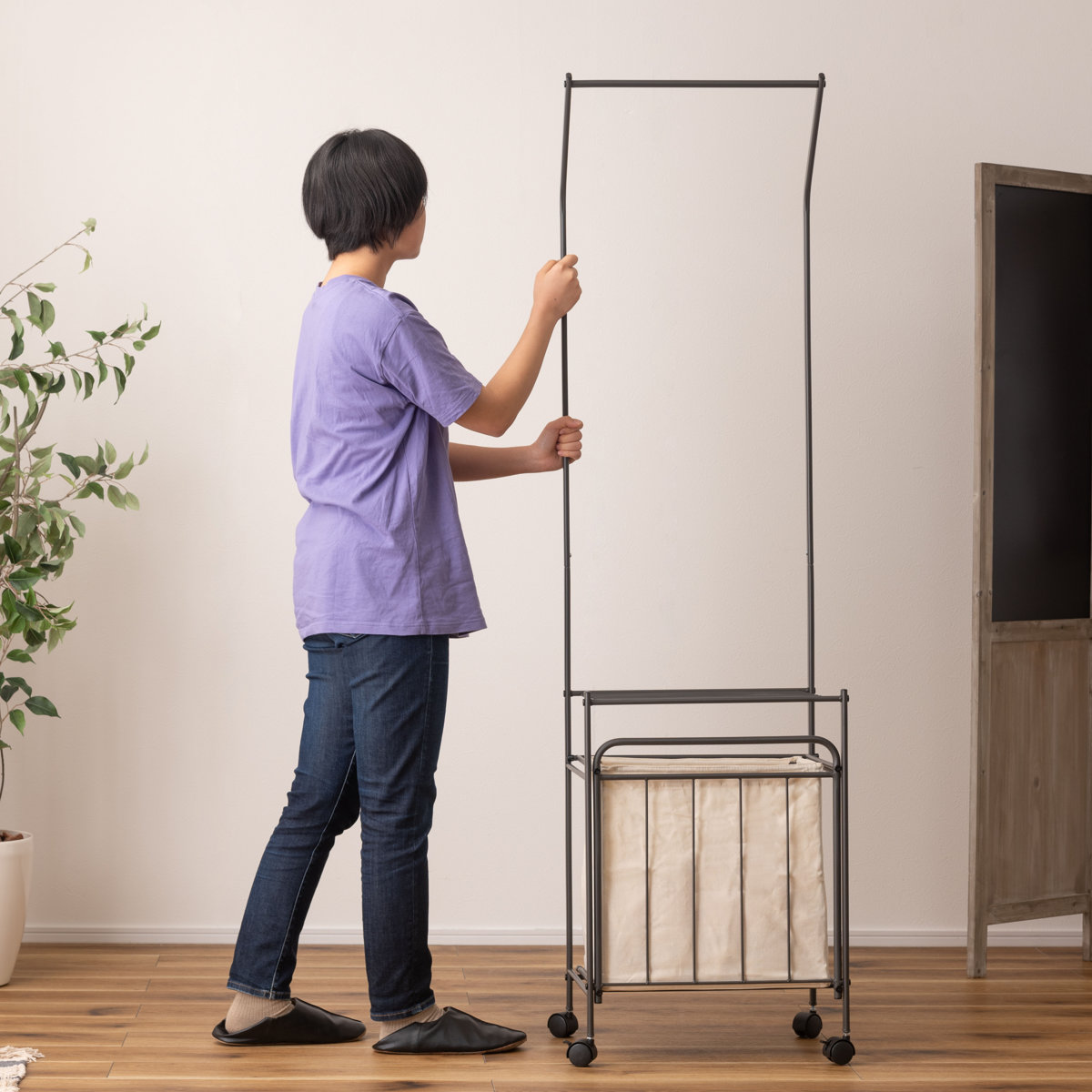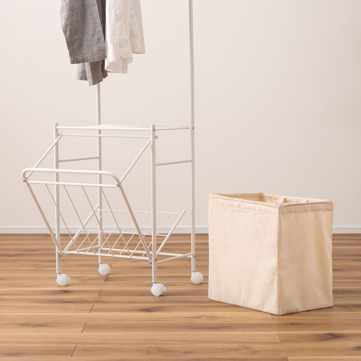 お部屋に馴染むシンプルでスタイリッシュなデザインです。寝室やリビングなどでは、衣類やバッグなどの収納にもお使いいただけ、幅広いシーンで活躍します。