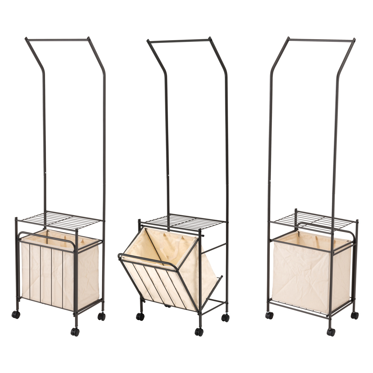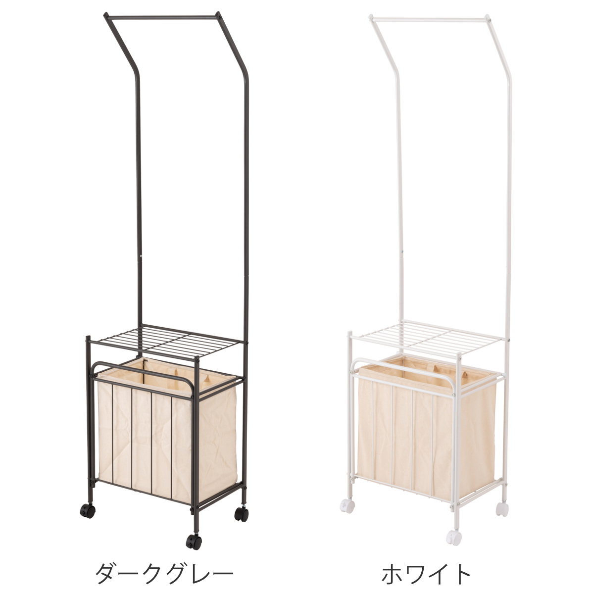 洗濯物干し キャスター付 室内物干し ハンガーワゴン ( ランドリーワゴン ハンガーラック ワゴン ラック バスケット付き 物干し 衣類収納 シンプル おしゃれ 室内干し 室内 洗濯 収納 コート掛け 棚板付き ) 【ダークグレー】のレビュー