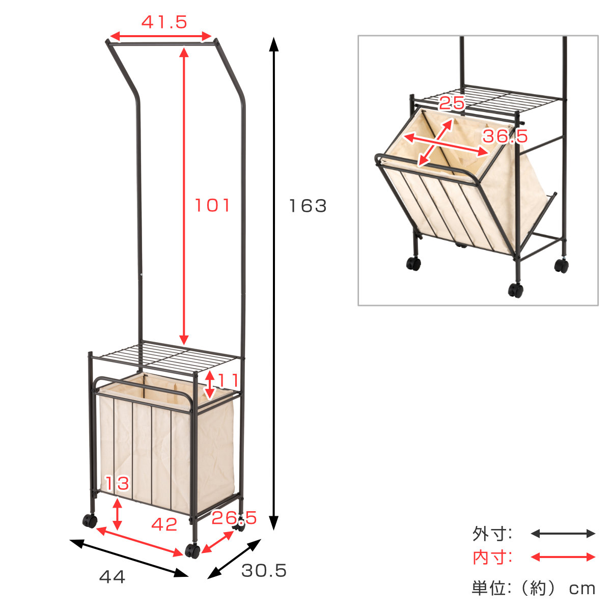 サイズ約 幅44×奥行30.5×高さ163(cm)