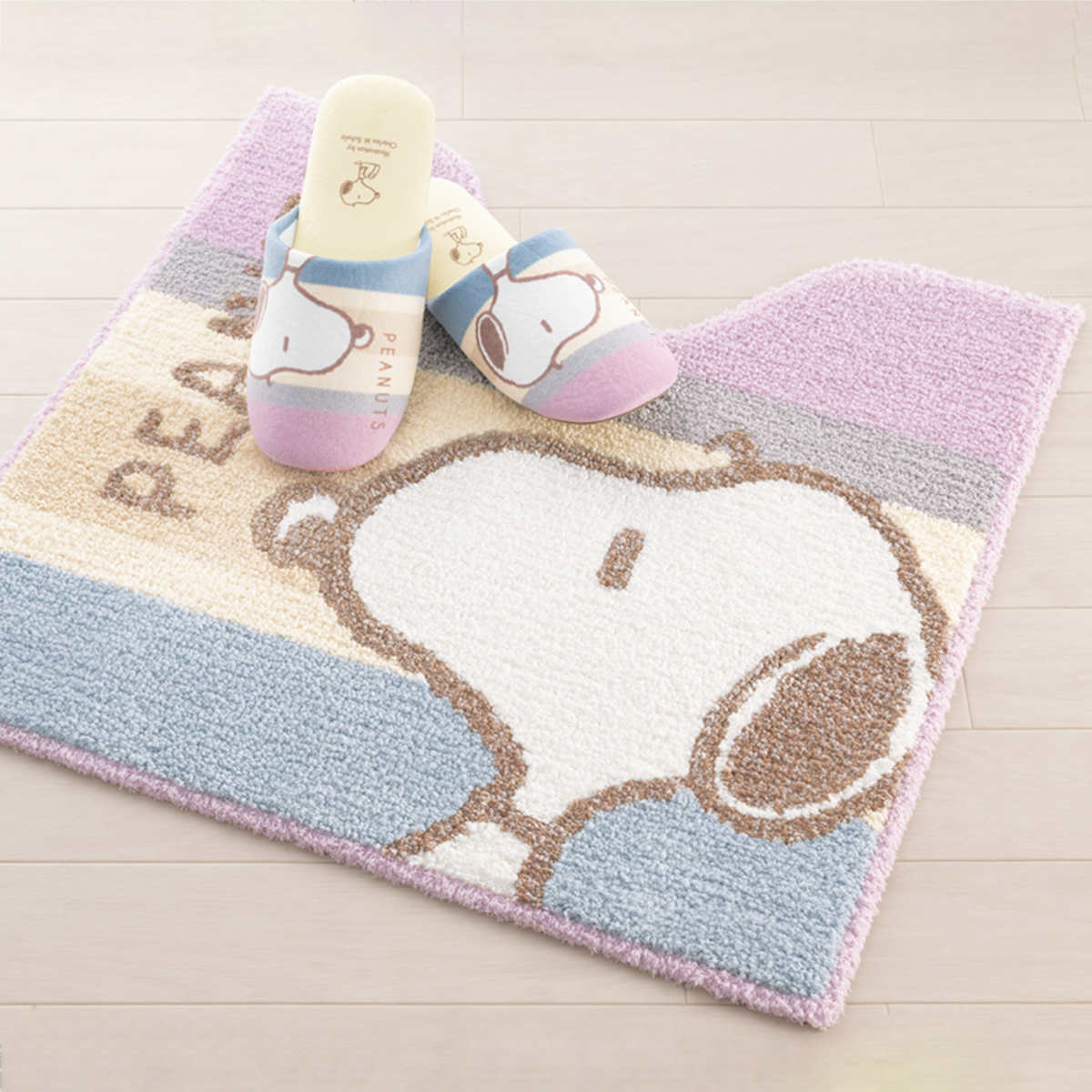 線画のスヌーピーは2色の糸で編まれ、ゆらぎ感ある柔らかな表情に仕上げました。同シリーズの商品を揃えることで統一感のあるかわいいトイレ空間が完成します。