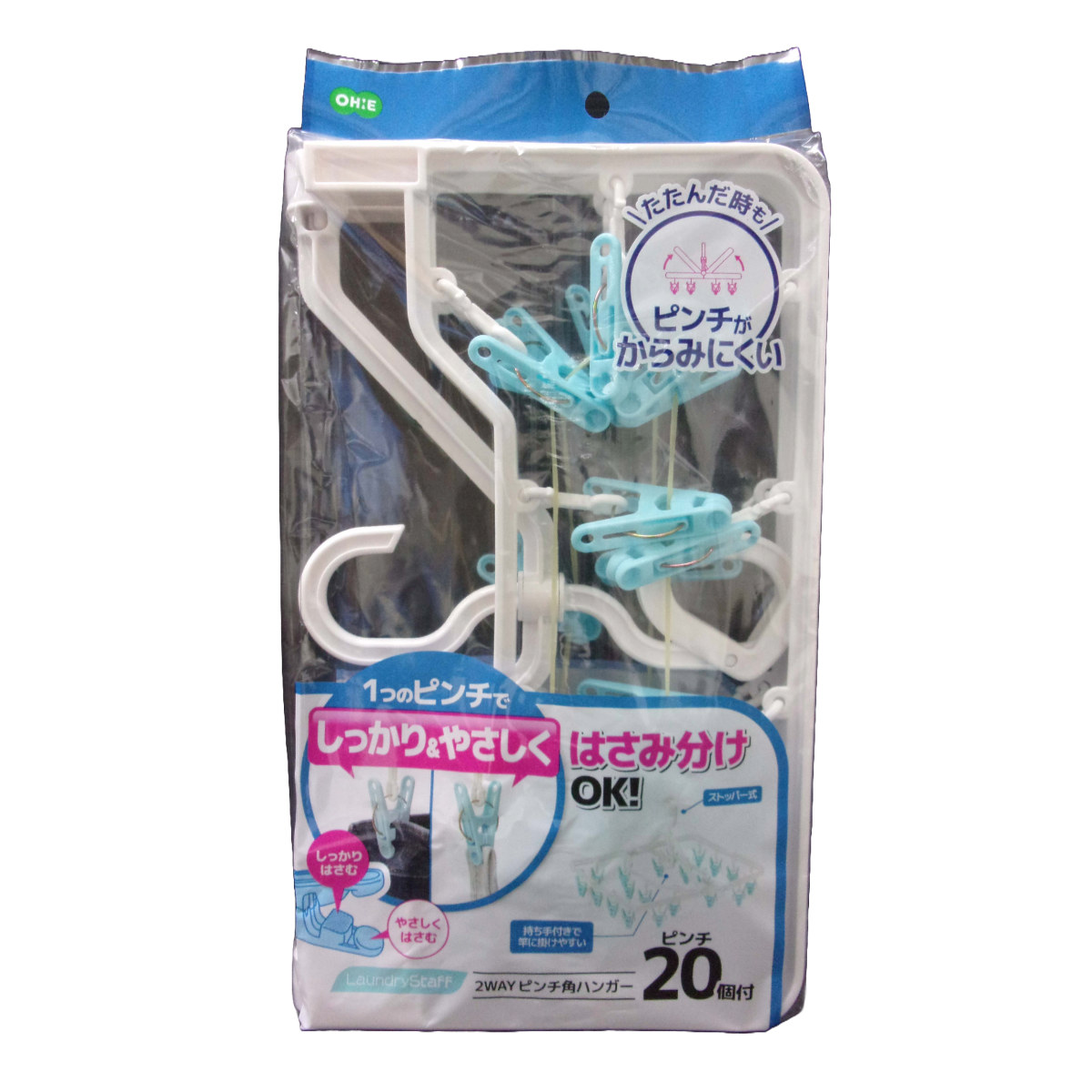 2WAYピンチで快適に干せる角ハンガー 20ピンチ