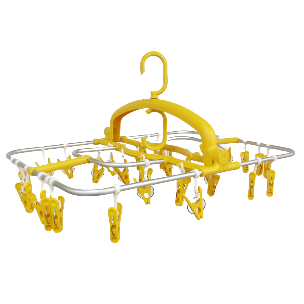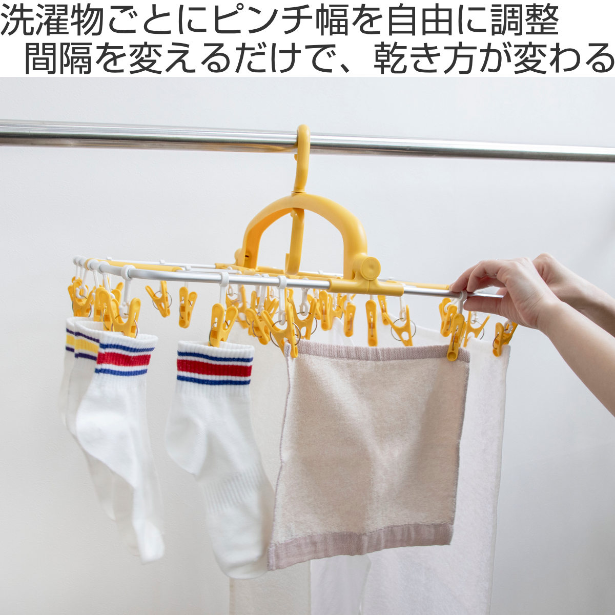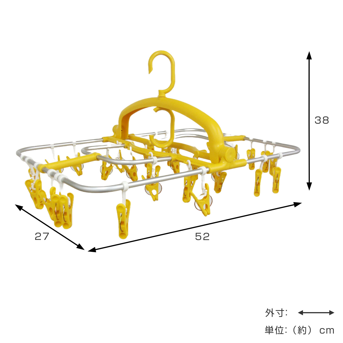 洗濯ハンガー 角ハンガー 32ピンチ アルモアカーサ ( ピンチハンガー 洗濯 ハンガー 折りたたみ 物干しハンガー 洗濯ピンチ ピンチ 洗濯ばさみ 物干し 32個 アルミフレーム 軽量 コンパクト 収納 上折れ式 ) 【イエロー】