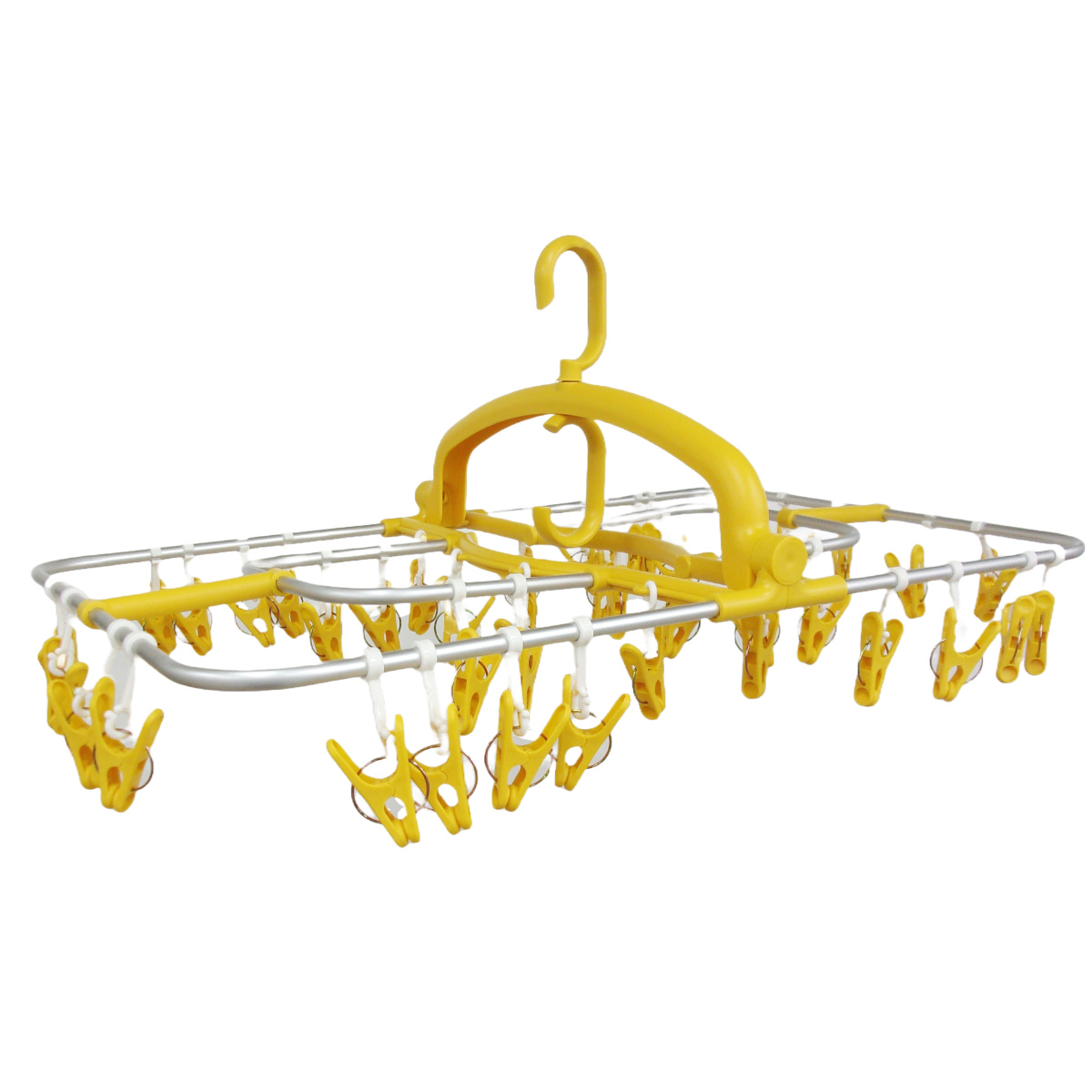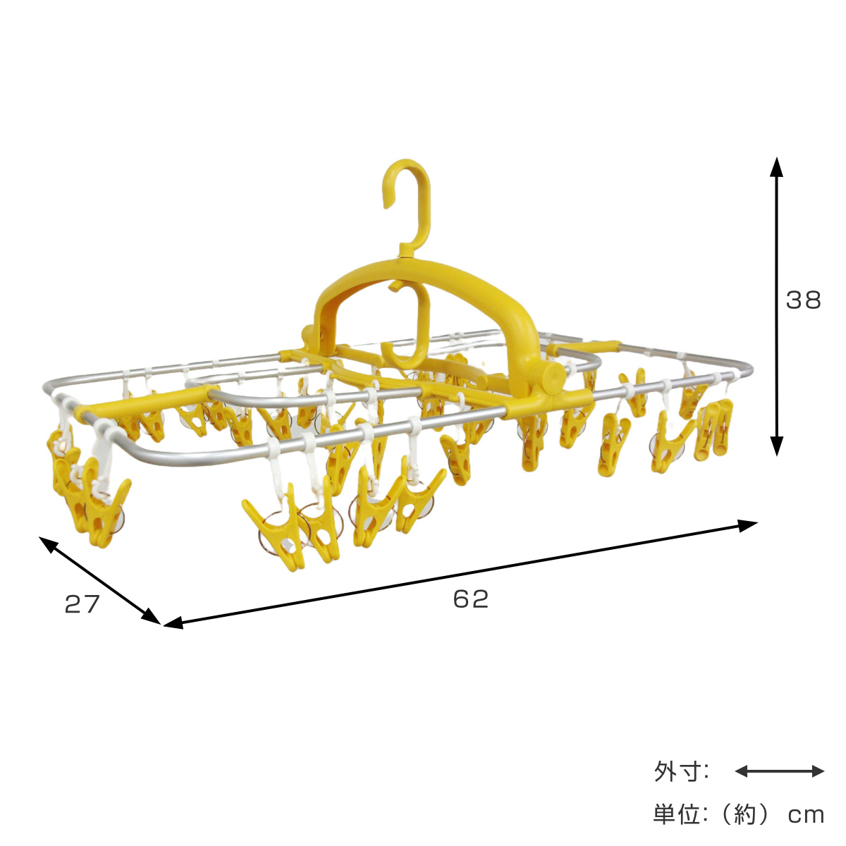 洗濯ハンガー 角ハンガー 40ピンチ アルモアカーサ ( ピンチハンガー 洗濯 ハンガー 折りたたみ 物干しハンガー 洗濯ピンチ ピンチ 洗濯ばさみ 物干し 40個 アルミフレーム 軽量 コンパクト 収納 上折れ式 ) 【イエロー】