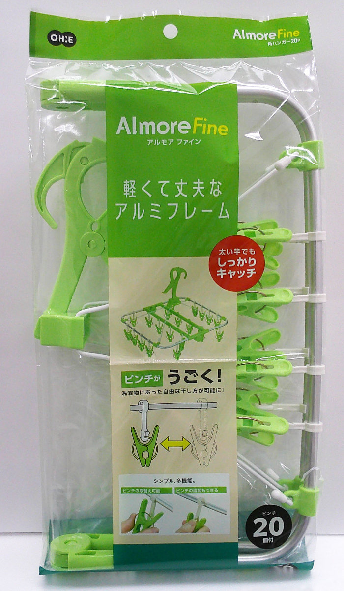 洗濯ハンガー 角ハンガー 20ピンチ アルモアファイン ( ピンチハンガー 洗濯 ハンガー 折りたたみ 物干しハンガー 洗濯ピンチ キャッチフック 洗濯ばさみ 物干し 20個 アルミフレーム 軽量 コンパクト 収納 下折れ式 )