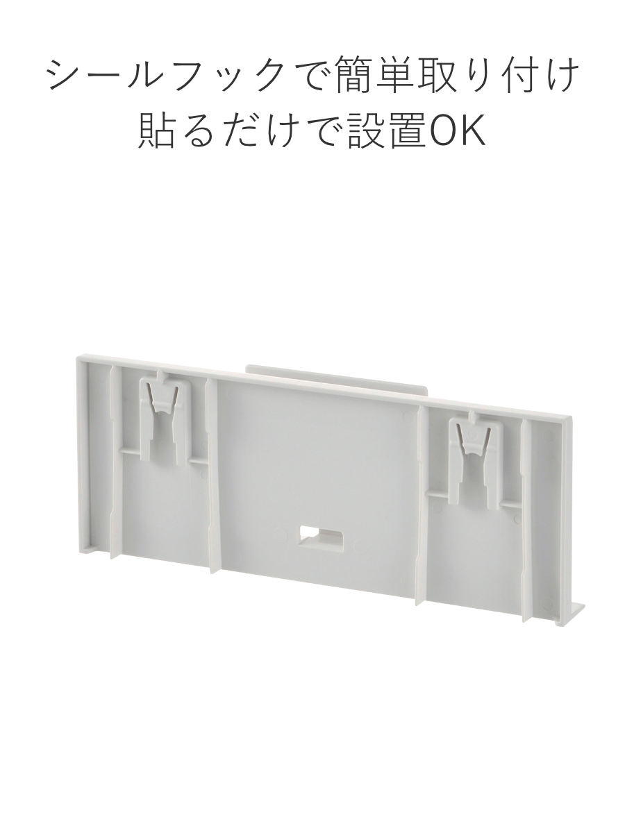 | 材質 | 本体、取付け板:ABS樹脂 シールフック:AS樹脂、PET、ポリウレタン |