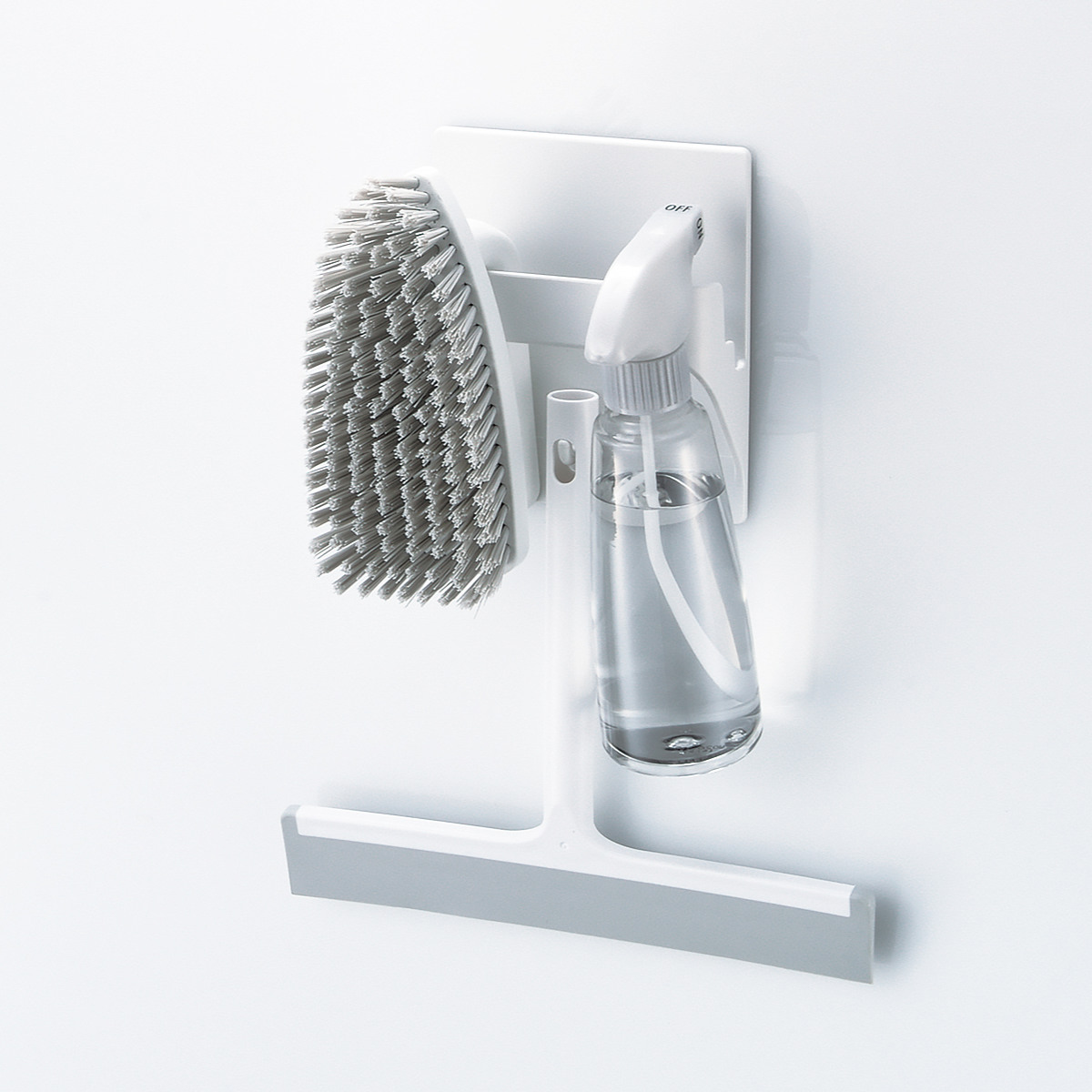 シャワーの飛び散りを避けて壁面に浮かせて収納できるマルチホルダーです。ホルダー部とフック部の両方に収納でき、風呂イスや桶を床に置かずにすっきり整理できます。水切れがよく、ヌメリや汚れを防いで清潔な浴室環境を保てます。