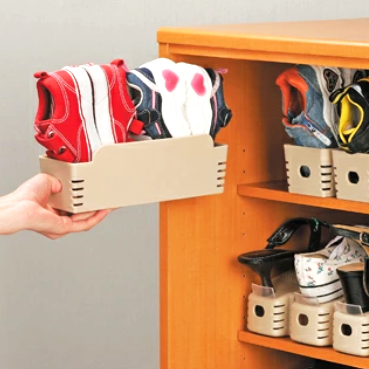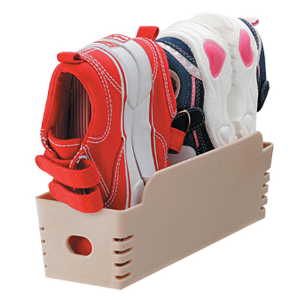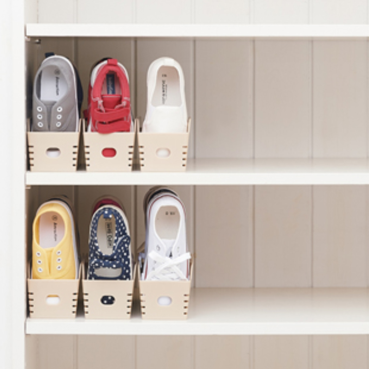 ベビーシューズから約18cmまでの子ども用の靴を2足収納できる【ちびホルダー】です。靴1足分のスペースに2足収納できるので、下駄箱・玄関に余裕が生まれます。