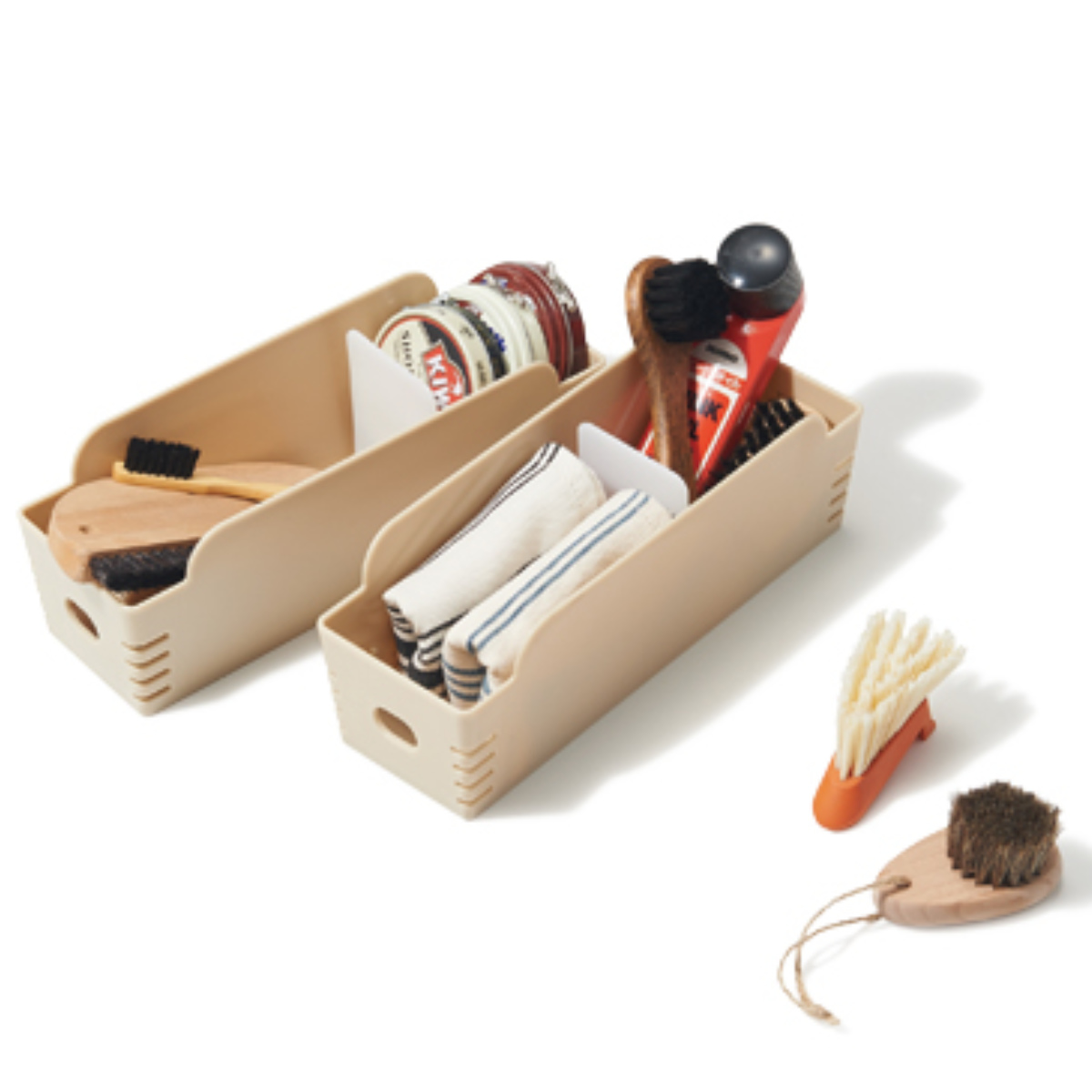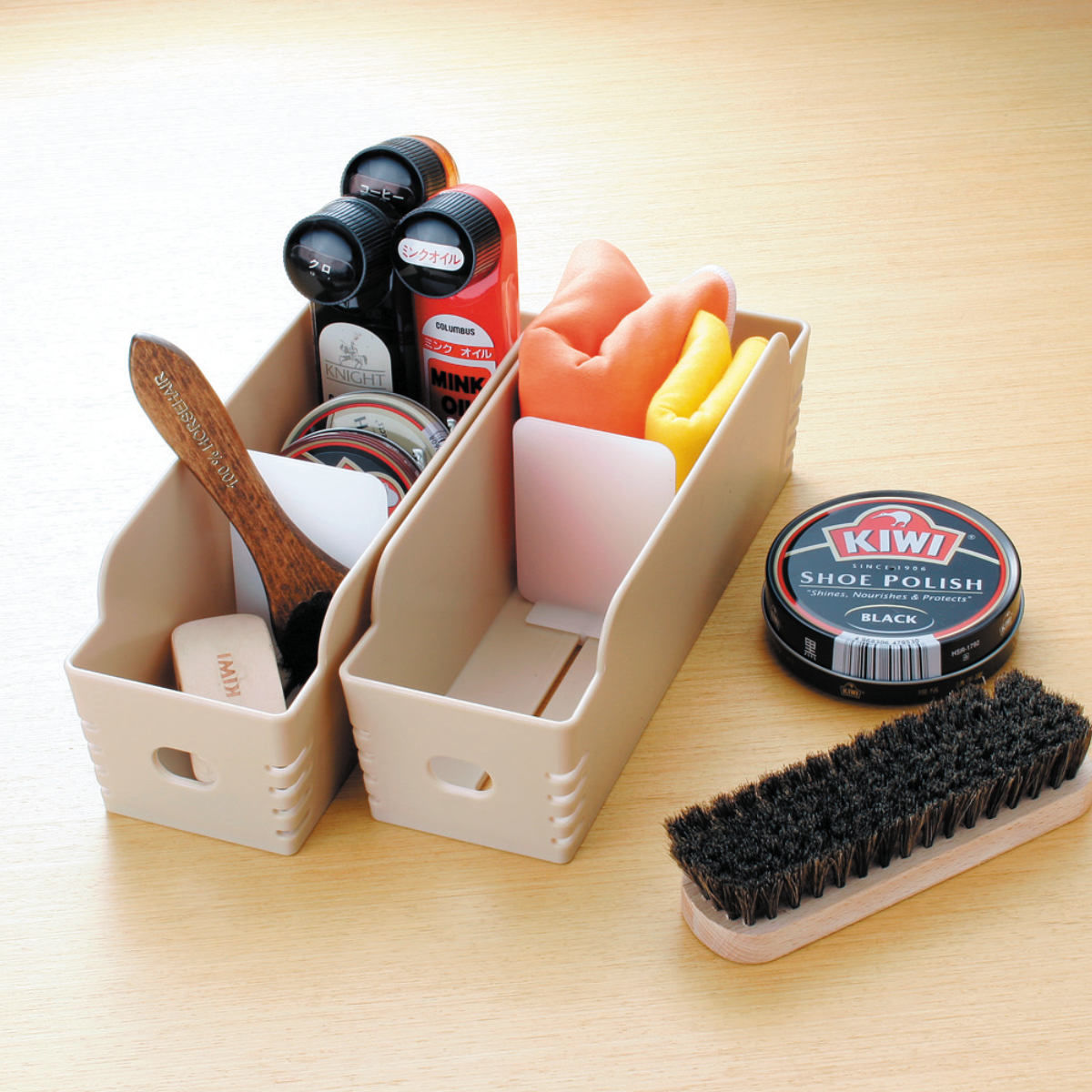 靴はもちろん、ブラシやワックス類などメンテナンス用品の収納にも適しています。
