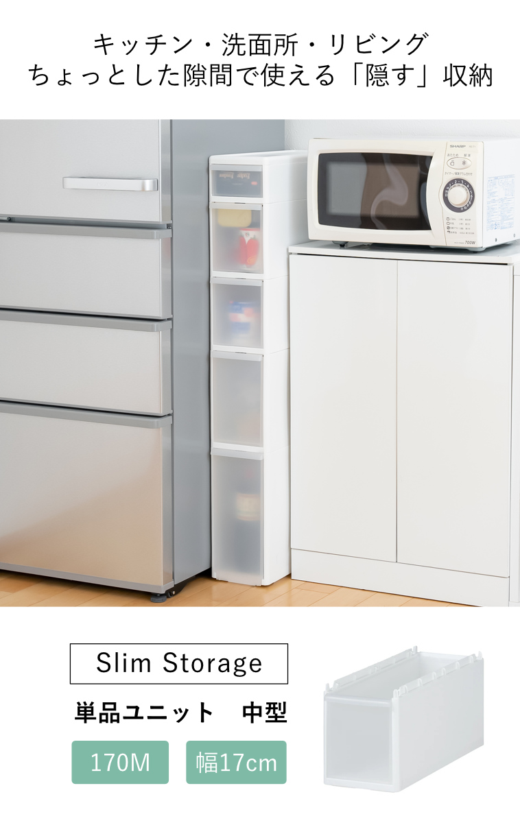 ●「スリムストレージシリーズ」幅17cmの中型ユニットです。