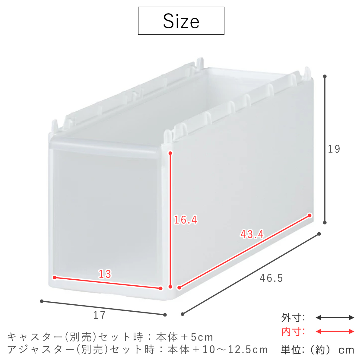 | サイズ | 外寸:約 幅17×奥行46.5×高さ19(cm) 内寸:約 幅13×奥行43.4×高さ16.4(cm) |