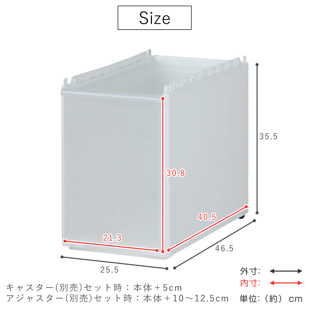 | 注意事項 | ※商品ページ内には別の商品を含む画像を使用しています。 ※ユニット同士を組み合わせる際は天板(別売)が必要になります。 ※ボトルユニットは最下段専用です。組み合わせの際は最下段としてのみお使いください。 |