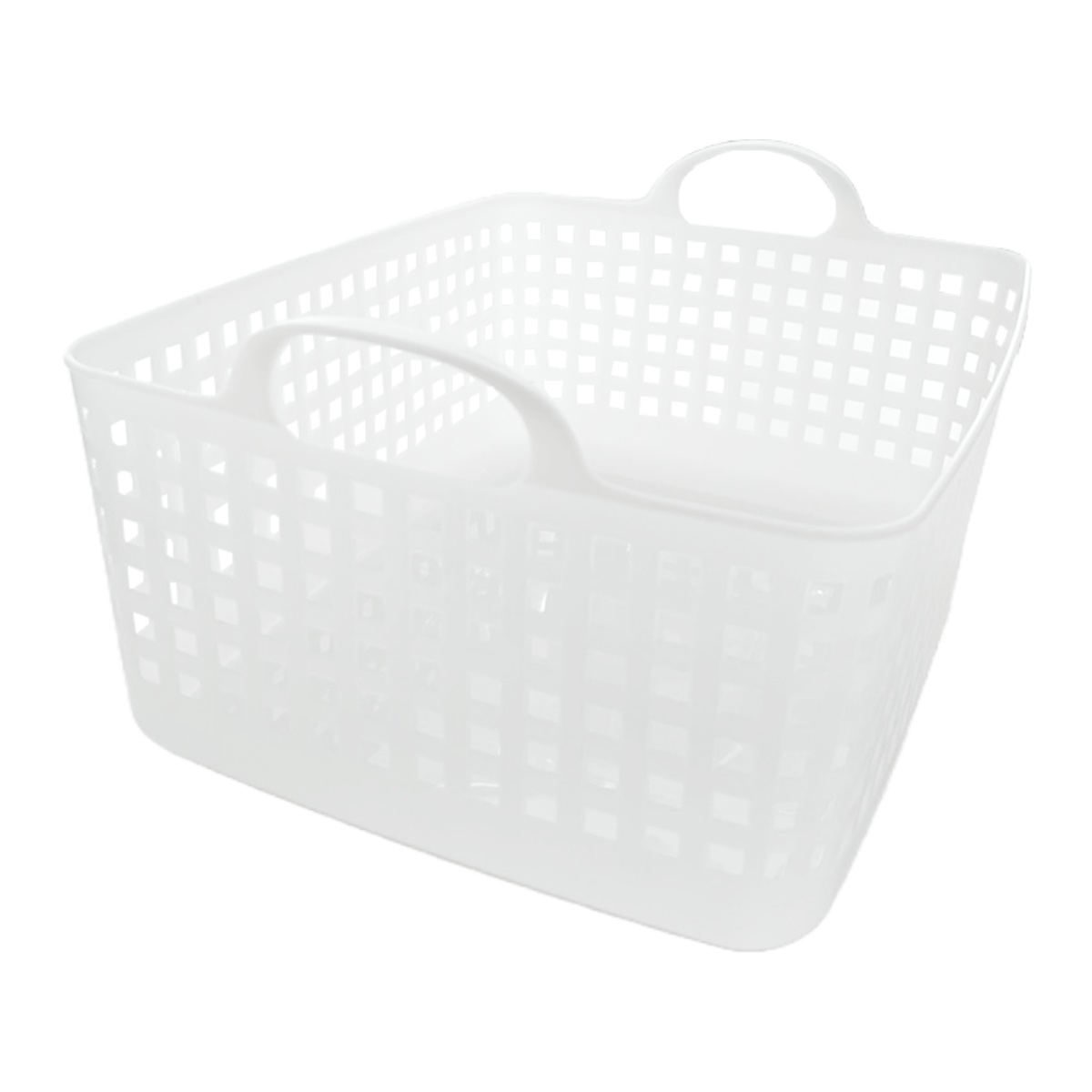 ランドリー収納に使えるシンプルで使いやすいバスケットです。プラスチック素材で扱いやすく、格子状なので通気性も抜群です。洗濯物入れとしてはもちろん、洗濯用品の収納、リビングに置いて膝掛けの一時置きやこどものおもちゃ入れとしても活躍します。