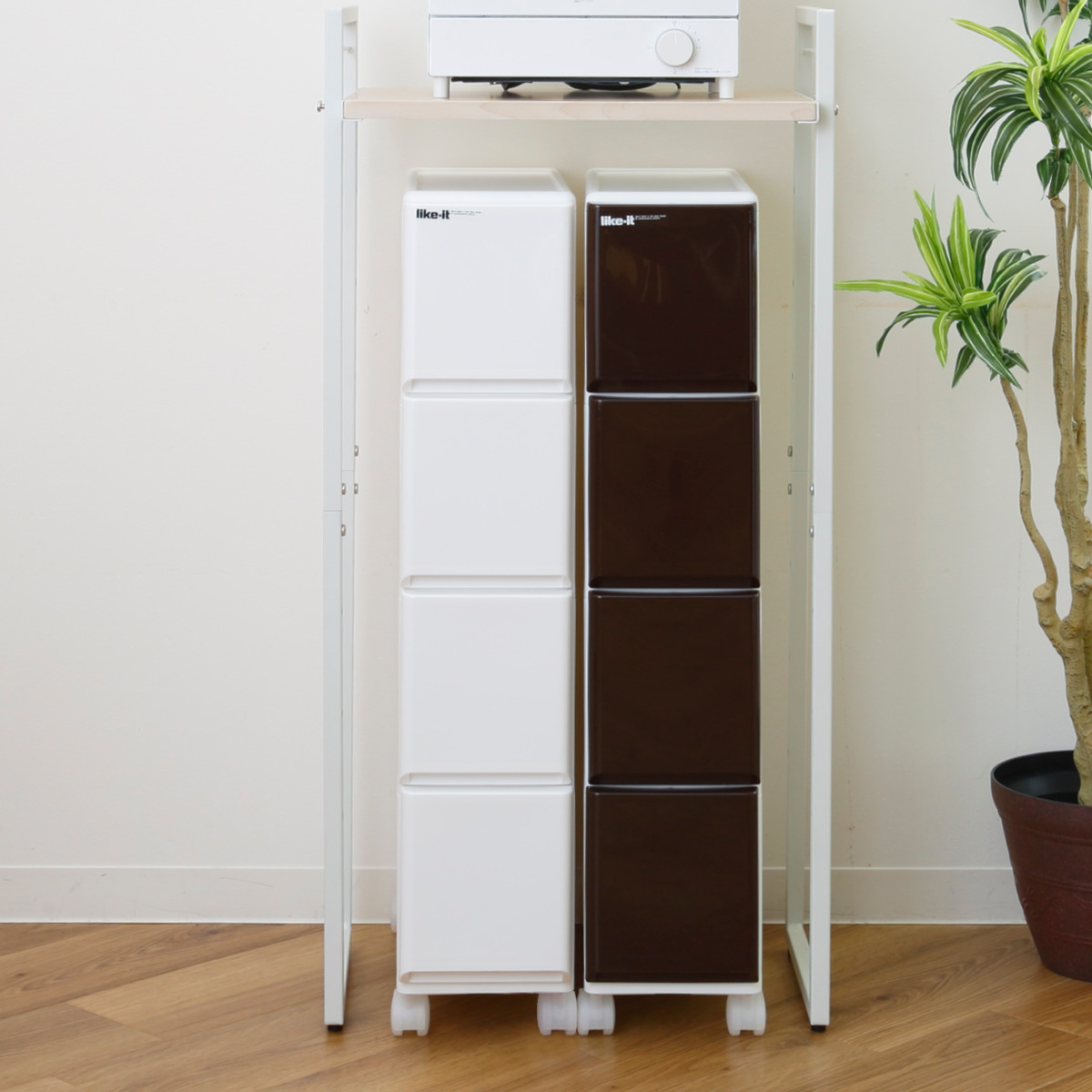 湿気の多いランドリールームや、物が多くなりがちなクローゼット内などキッチン以外の場所にも便利に使えます。家の中のあらゆるすき間を利用してすっきり小物などを収納できます。