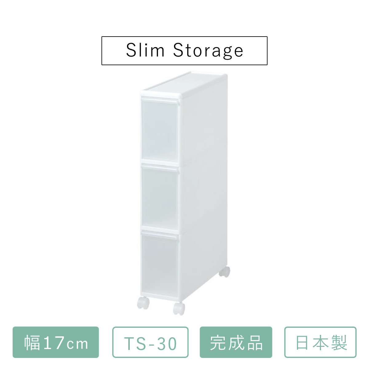 キッチンストッカー 幅17cm 3段 キャスター付き スリムストレージ TS-30 ( キッチン収納 隙間収納 スリム ストッカー ラック サニタリー プラスチック製 シンク横収納 引き出し すき間収納 洗面所 脱衣所 キッチン 収納 )