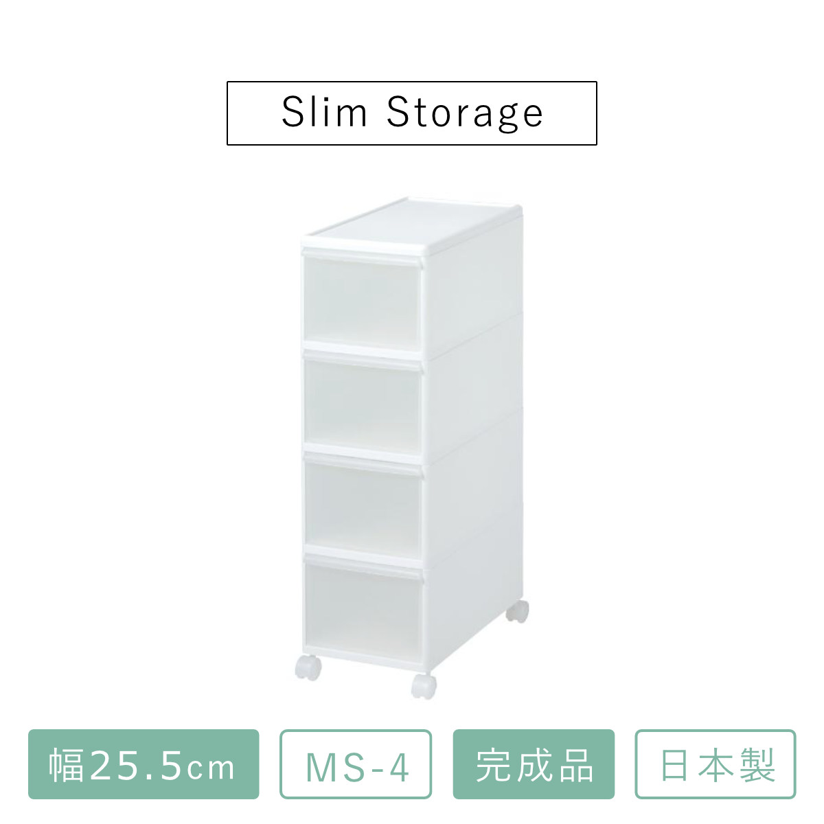 キッチンストッカー スリムストレージ ミディストッカー 幅25.5cm 4段 MS-4 ( キャスター付き ストッカー スリム 収納ストッカー キッチン収納 隙間収納 25.5cm スリムストッカー キッチン 収納 スリムキッチンラック )