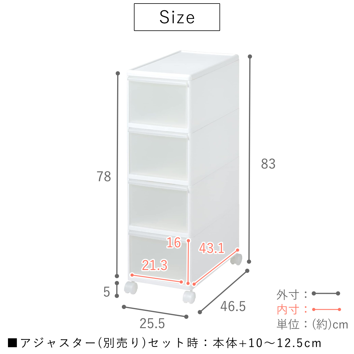 | サイズ | 約 幅25.5×奥行46.5×高さ83(cm) |