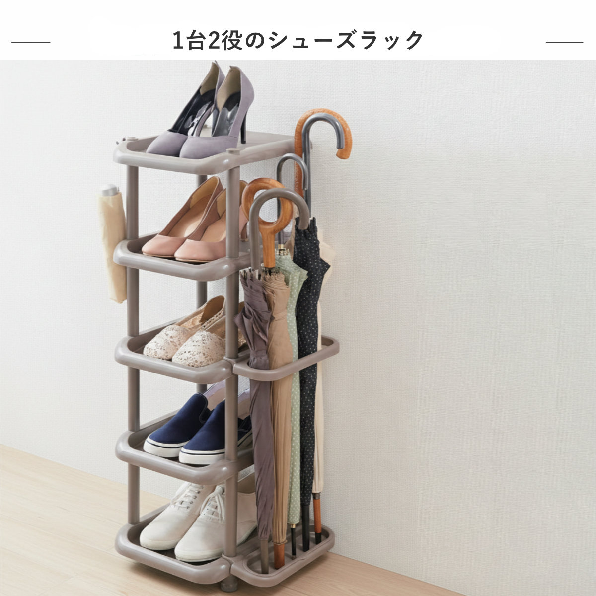シューズラック 5段 シューズストレージ 傘立て付き 組立品 ( シューズスタンド 靴収納 下駄箱 靴 収納 ラック 傘立て スリム 簡単 組み立て 玄関 シューズ 傘たて 玄関収納 省スペース シューズボックス ) 【ブラウン】