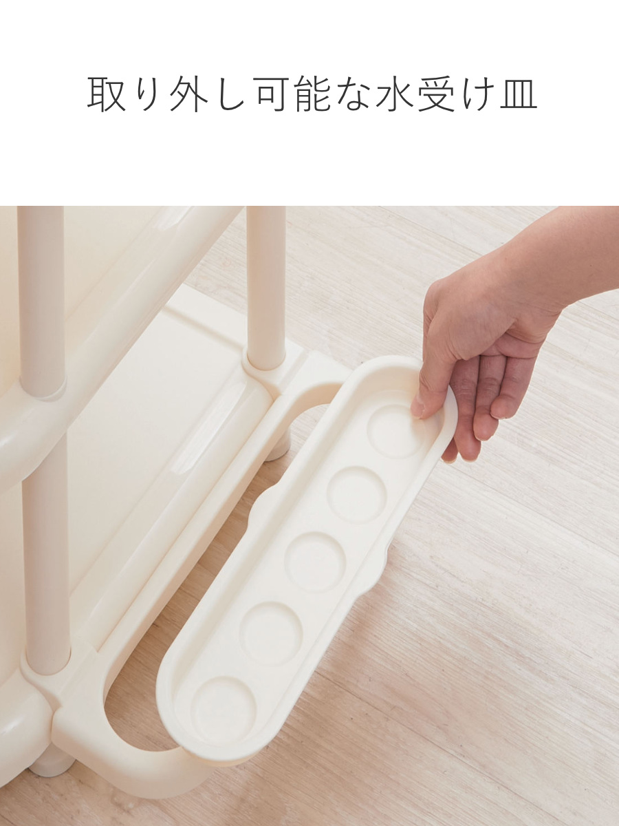 傘立ての水受け皿は取り外しができるので、雨の日などに溜まった水を捨てる事ができ、清潔に保てます。