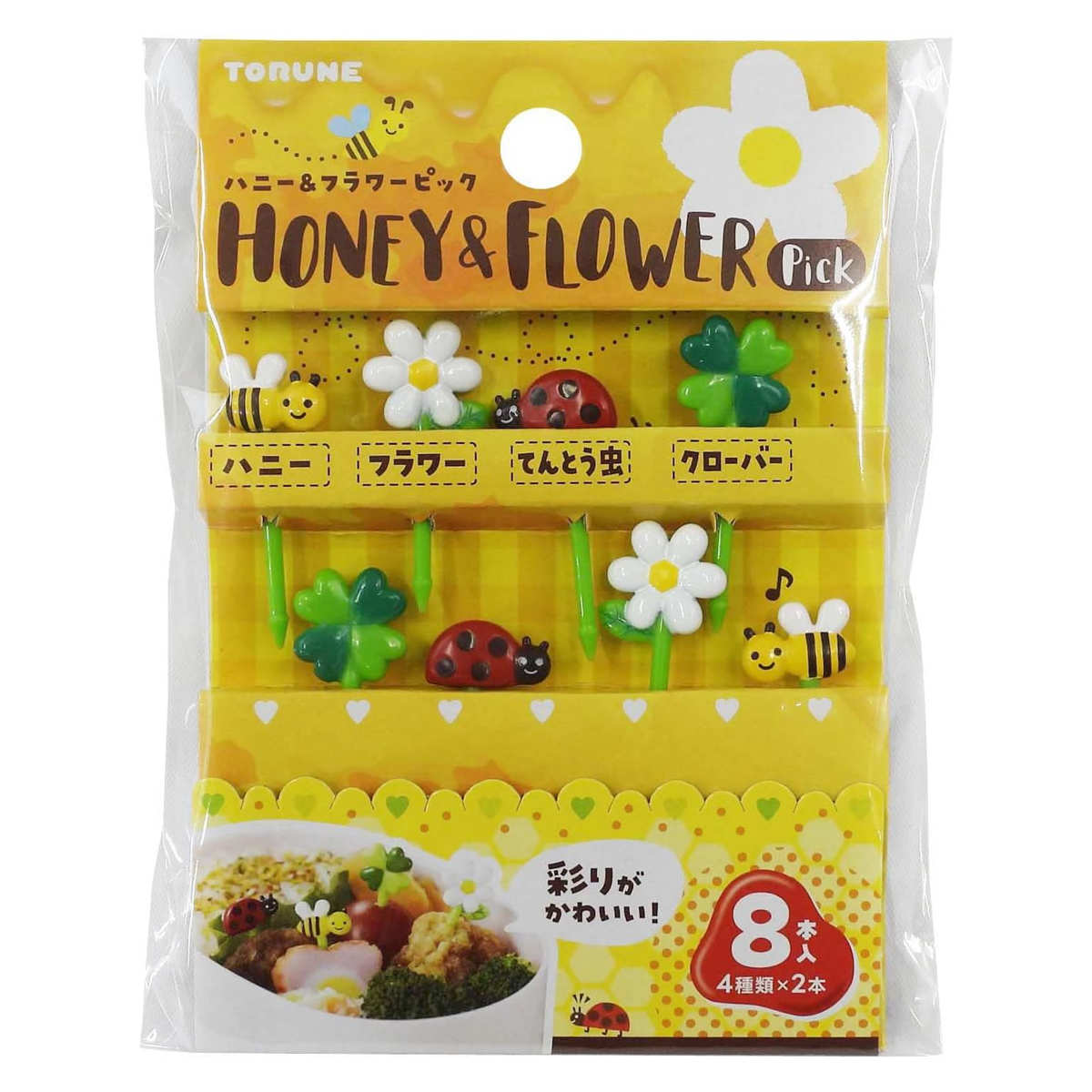 ピック ハニー&フラワーピック 8本入 ( おかずピック お弁当ピック ピックス 弁当 子供お弁当用 子供用 キッズ キャラ弁 お弁当グッズ パーティー 運動会 お弁当 お弁当用 幼稚園 保育園 デコ弁 )