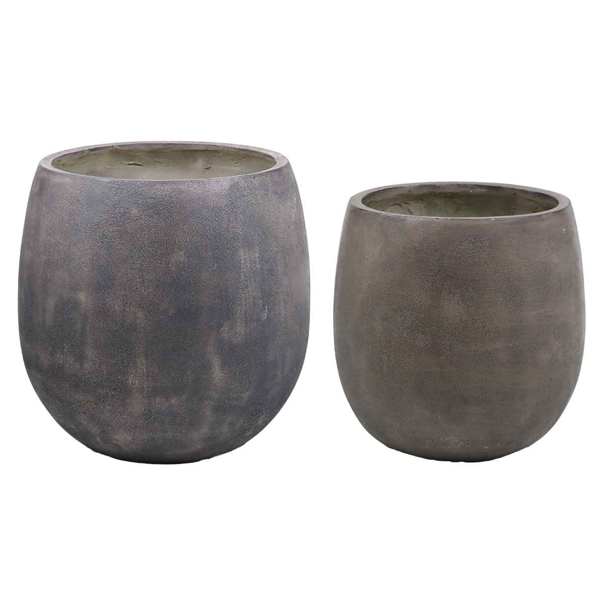 プランター グリッテ 石調FRPプランター 幅30cm 幅42cm ドロップ型 大小2個セット ( プランターカバー ラウンド 植木鉢 鉢 底穴 屋外 外 家庭菜園 寄せ植え ポット 鉢カバー 鉢植え 屋内 丸型 円型 大型プランター 水抜き穴 ) 【グレー】