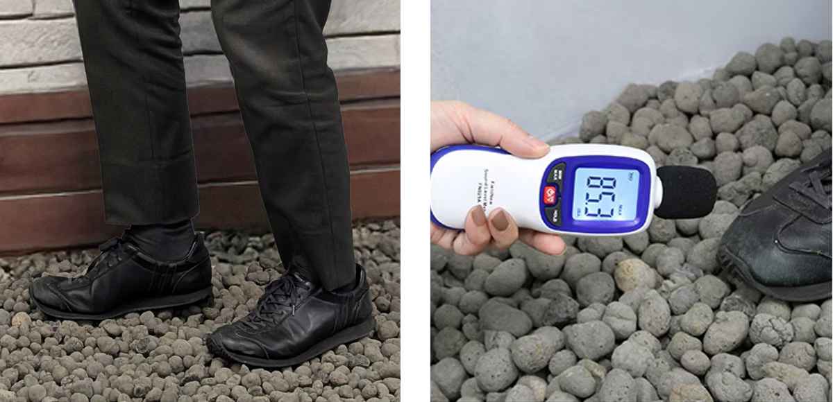 踏むと80dB(デシベル)以上の音が出ます。電車の走行音や掃除機の音、電話の呼び出し音に匹敵する音量です。不審者を威嚇するだけでなく、防犯意識の高い家であることを印象付けられます。