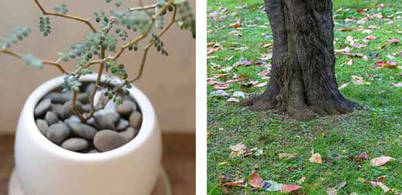 | 鉢底石として 設置することで、鉢の中の通気性や排水性が良くなります。 | マルチング材として 木の根元などの土表面を覆うことで、植物の凍結防止や水分蒸発の緩和ができます。 |