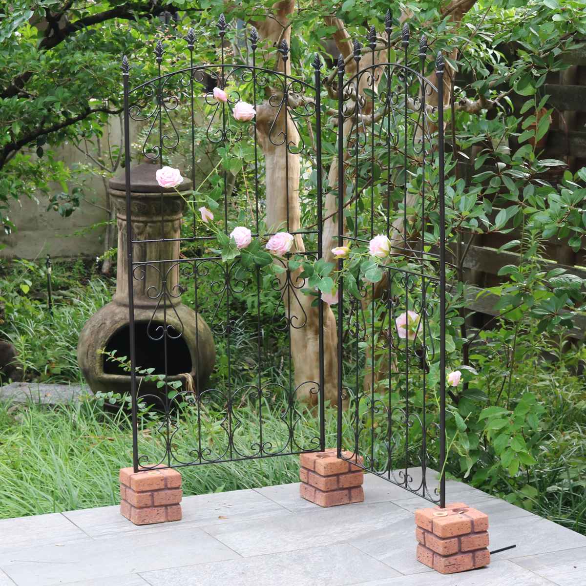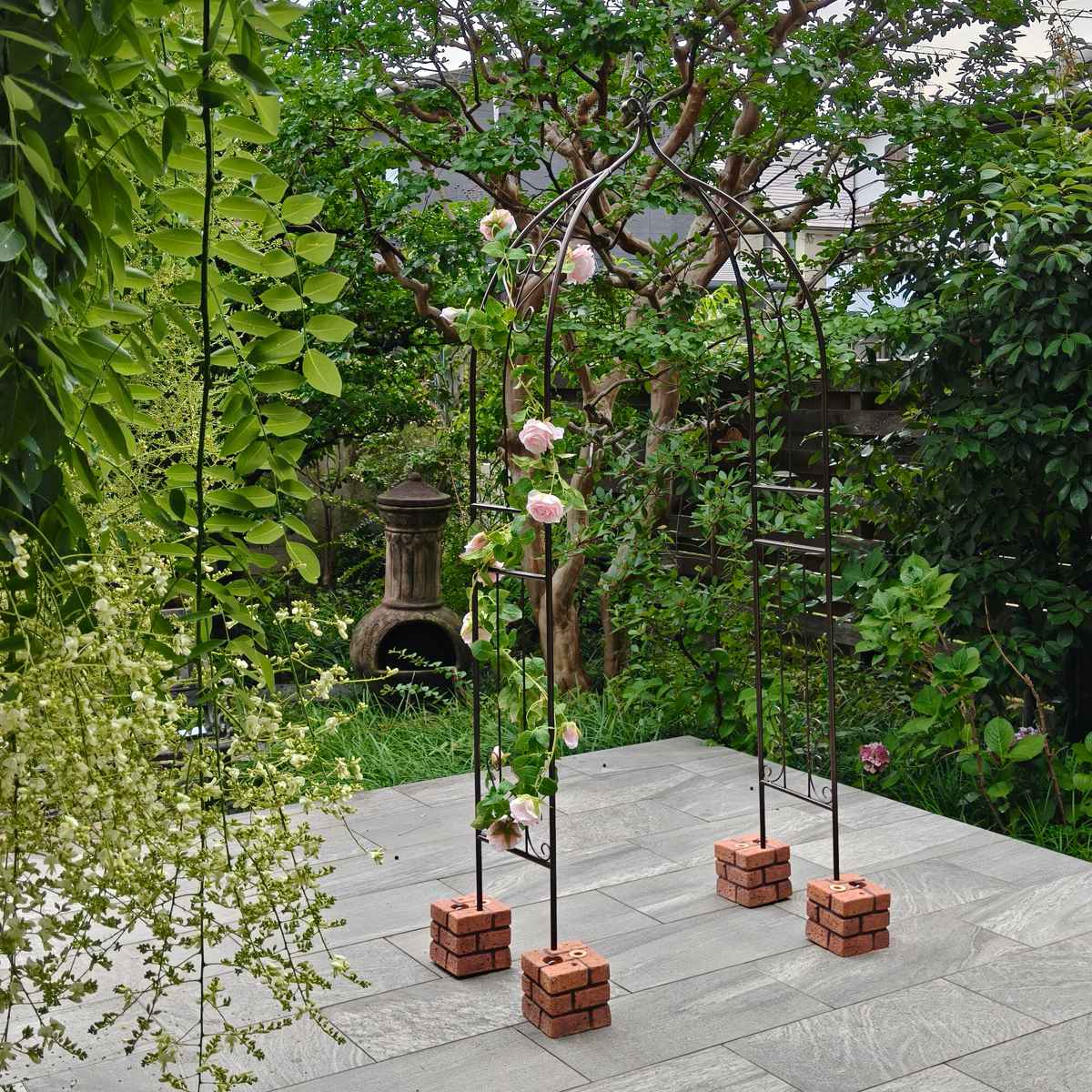 フェンスやアーチを穴に差し込むだけで、簡単に設置できます。土の上はもちろん、ウッドデッキやコンクリートの上など、場所を選ばずに設置が可能です。