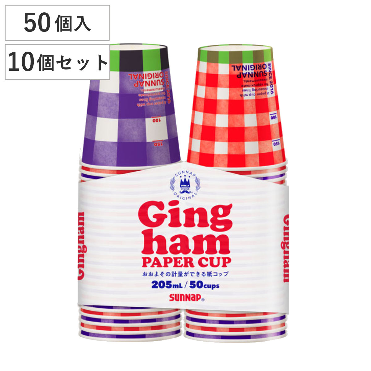 紙コップ 205ml 50個入 FMXギンガムペーパーカップ ( 使い捨て 紙 コップ カップ ホット コールド チェック柄 50個 紙容器 紙製 ペーパーコップ BBQ アウトドア パーティー キャンプ 日本製 )