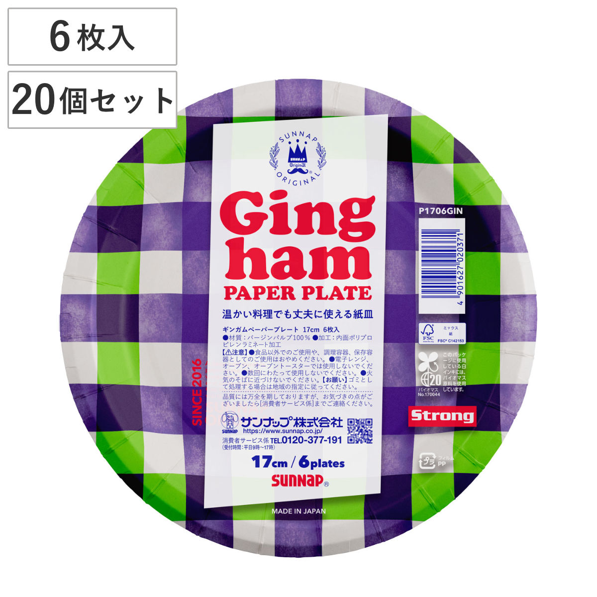 紙皿 17cm 6枚入 FMXギンガムペーパープレート ( 使い捨て チェック柄 簡易食器 使い捨て容器 紙容器 6枚 使い捨て紙皿 容器 紙 プレート 使い捨てプレート 取り皿 皿 トレー BBQ アウトドア パーティー キャンプ 日本製 )