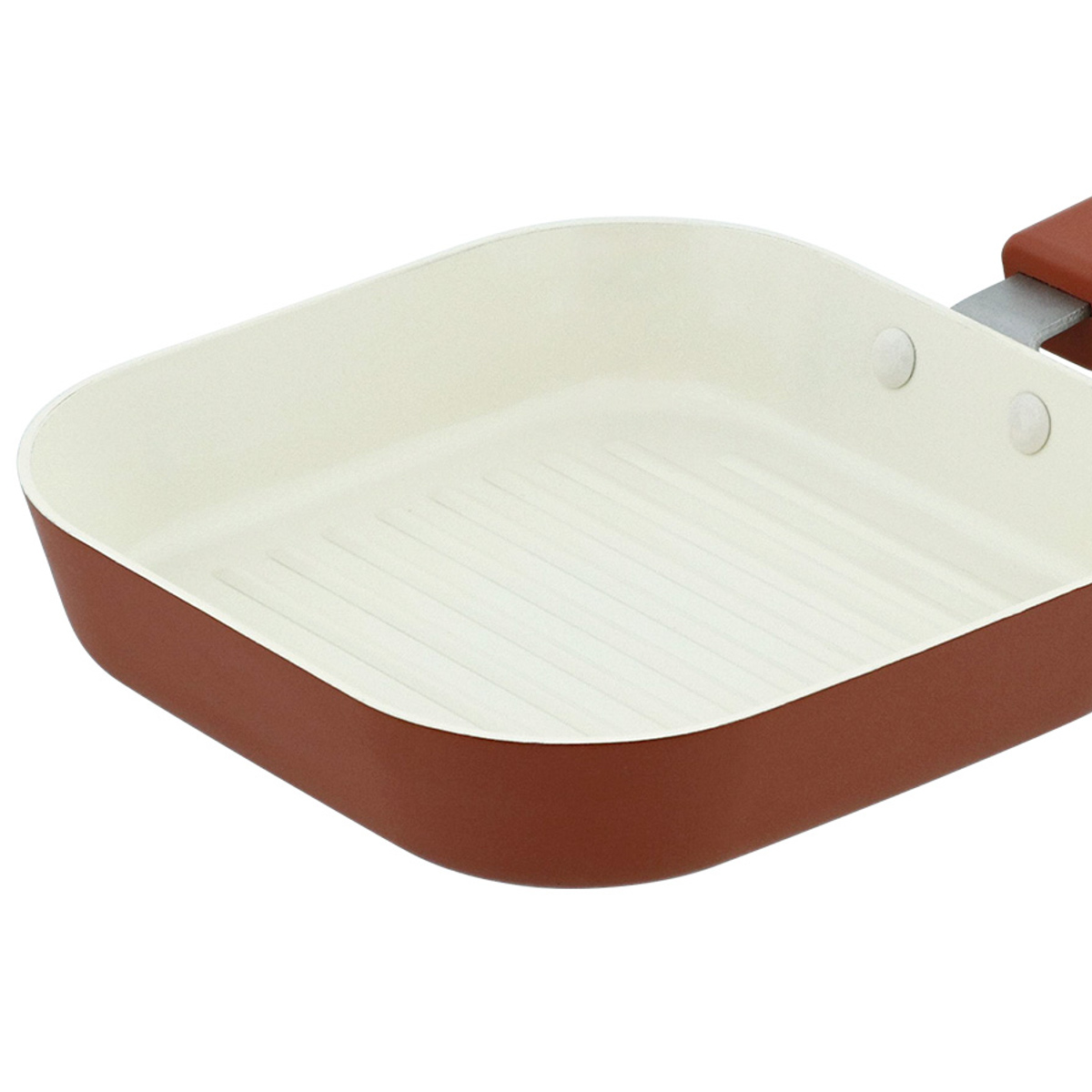 フライパン ガス火専用 ミニグリルパン 14.5cm セラミック ( ガス火対応 角型フライパン グリルパン セラミックフライパン 小 アルミ製 ミニフライパン 四角い こびりつきにくい 魚焼き 波型 グリル プレート おしゃれ 小さい ) 【マットレッド】