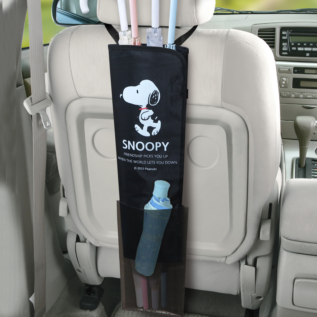 傘ケース 5本 収納可能 スヌーピー 折りたたみ カー用品 ( 傘カバー 傘袋 収納 吊り下げ 傘立て 長傘 折りたたみ傘 車内 屋内 SNOOPY アンブレラケース ヘッドレストポール 取り付け 簡単 取り外し可能 雨の日 玄関 )