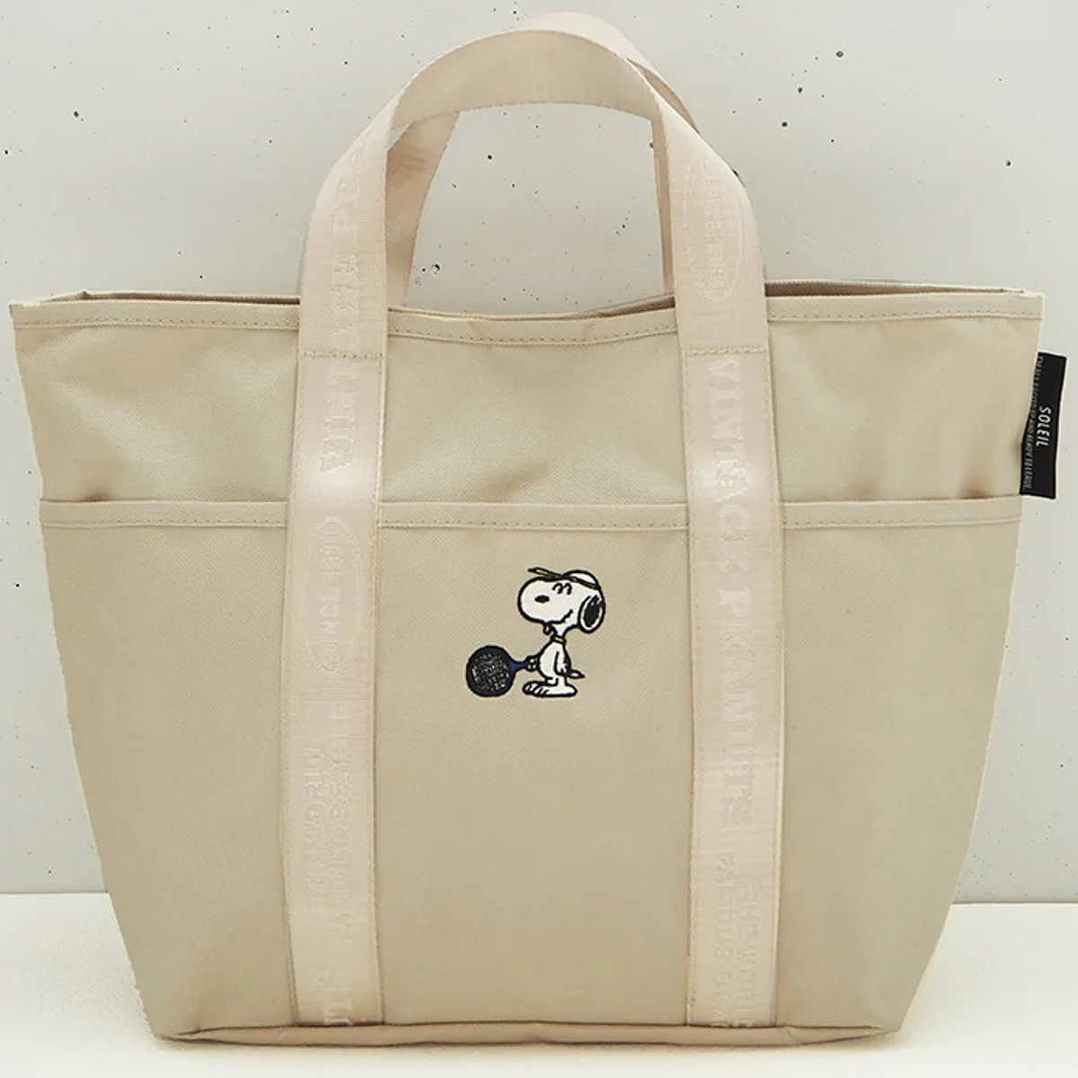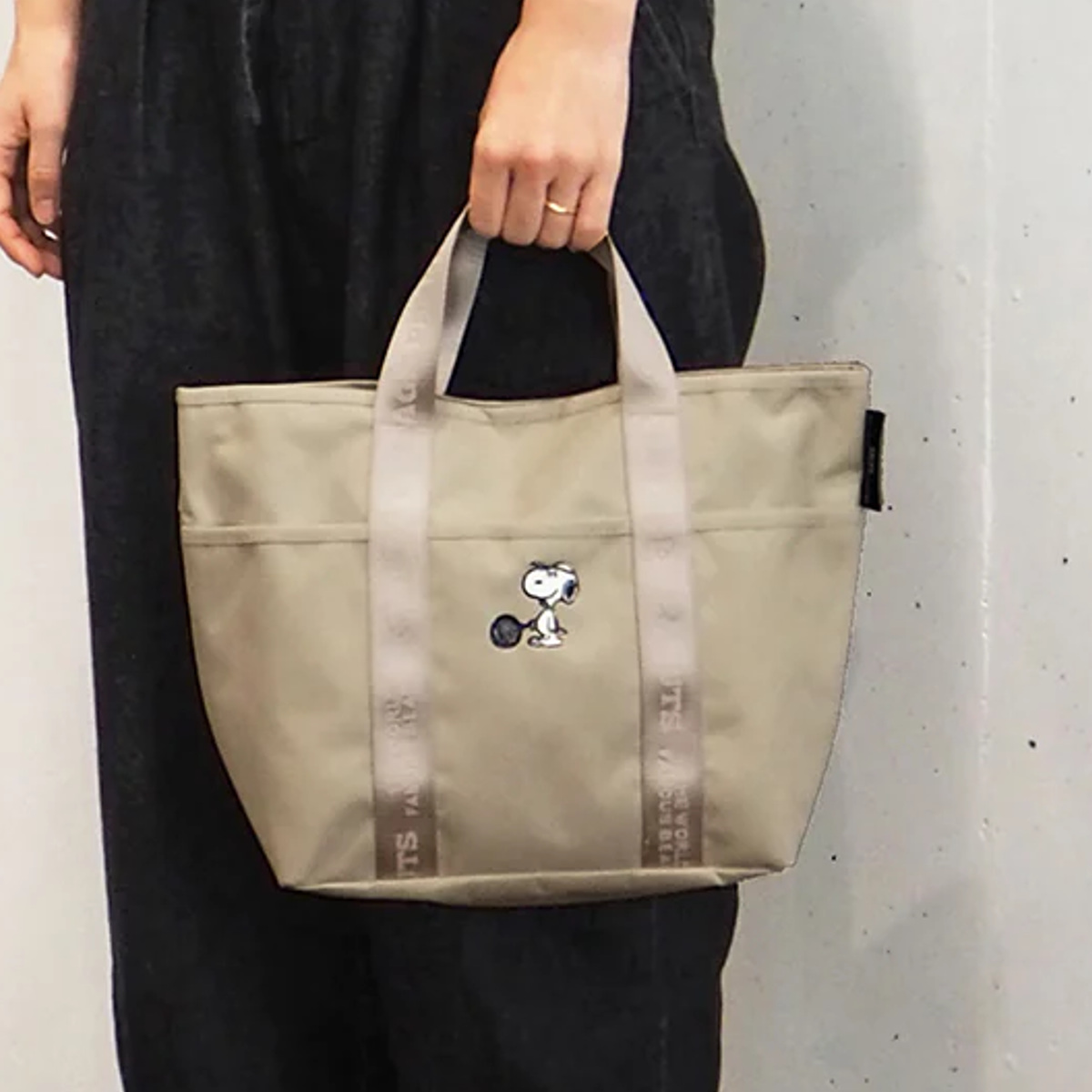 トートバック M スヌーピー ポケット付き ( SNOOPY ミニトート 手提げバッグ かばん 鞄 手提げ サブバッグ エコバッグ マチ付き レディース 大人 かわいい おしゃれ プレゼント 雑貨 通勤 通学 買い物 ) 【ライトベージュ】