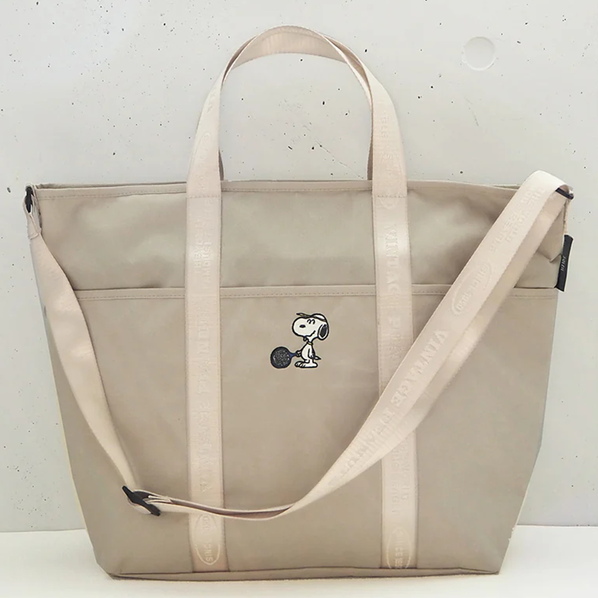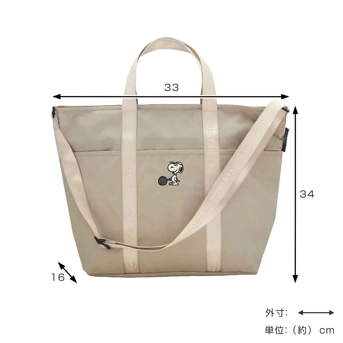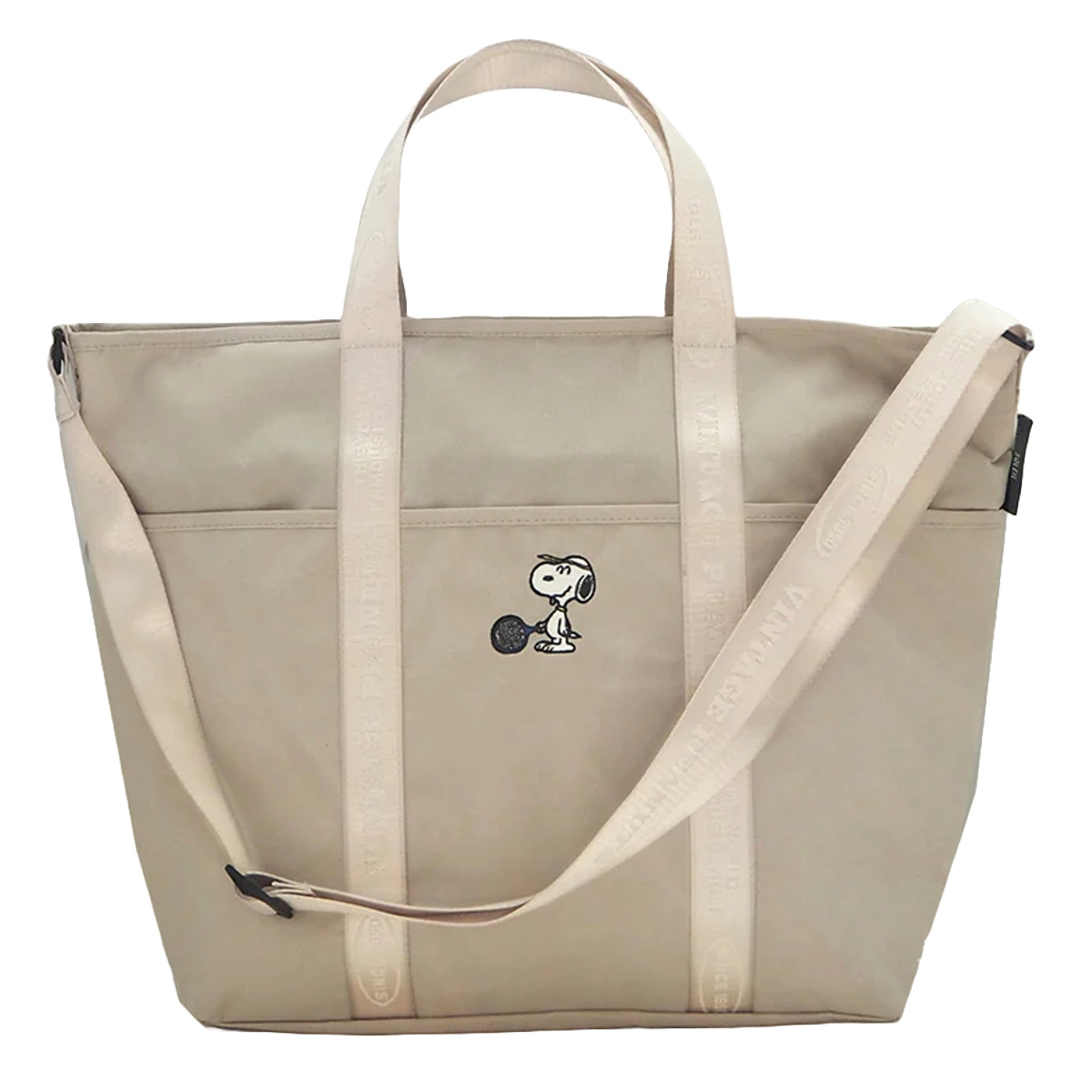 トートバック L スヌーピー ポケット付き ( SNOOPY トート ショルダーバッグ 斜めがけ 手提げバッグ かばん 鞄 手提げ サブバッグ エコバッグ レディース 大人 かわいい おしゃれ プレゼント 雑貨 通勤 通学 買い物 旅行 ) 【ライトベージュ】