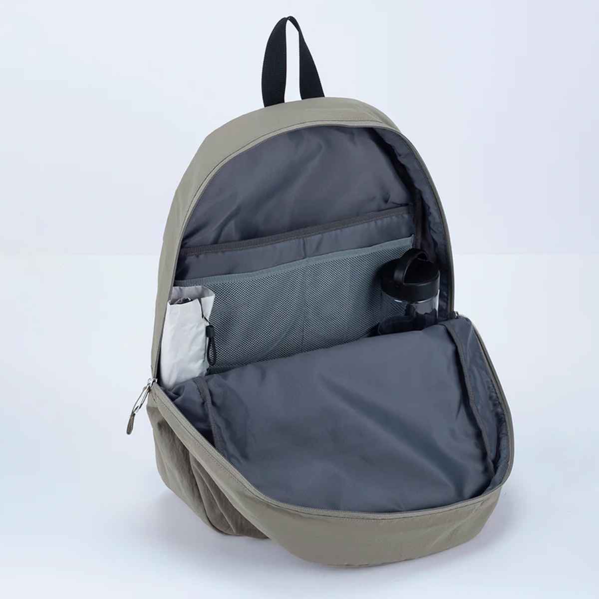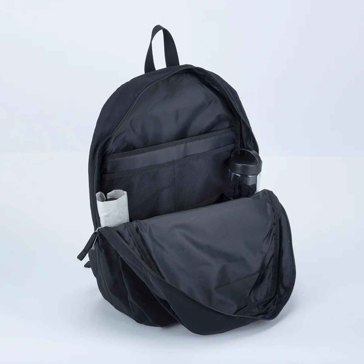 開口部が大きく開くファスナー仕様で、中身を確認しやすくスムーズに出し入れできます。収納力があり、水筒や折りたたみ傘などのよく使うものをまとめて収納可能です。