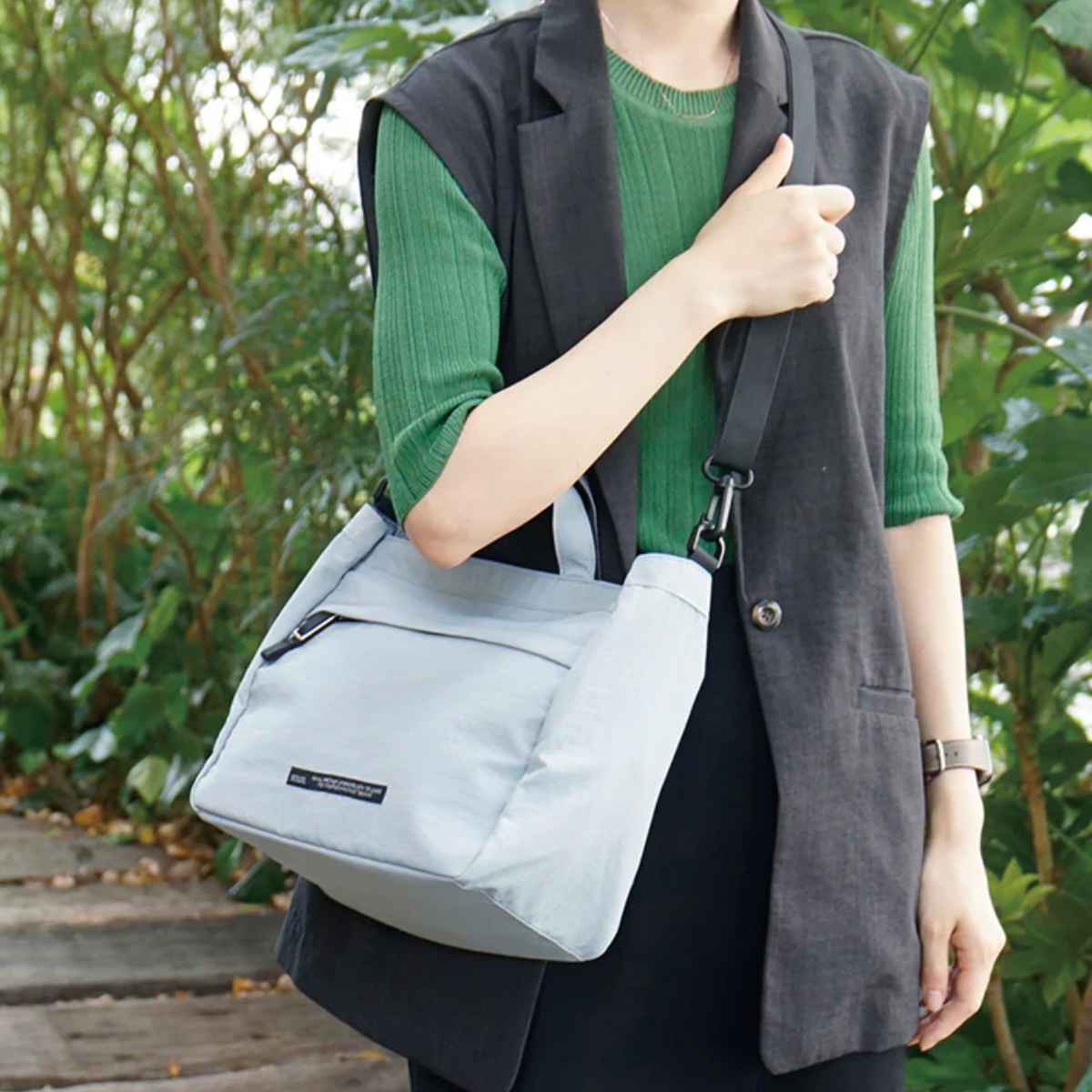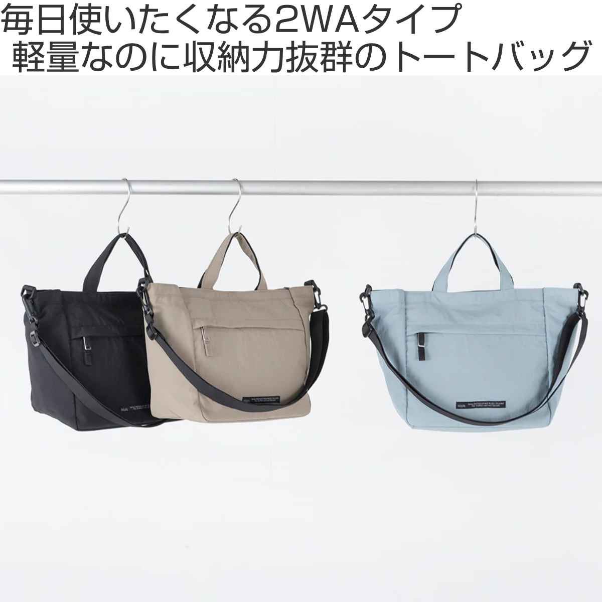 トートバッグとショルダーバッグのどちらでも使える2WAY仕様です。肩掛け・手持ちを使い分けて快適に持ち運べます。