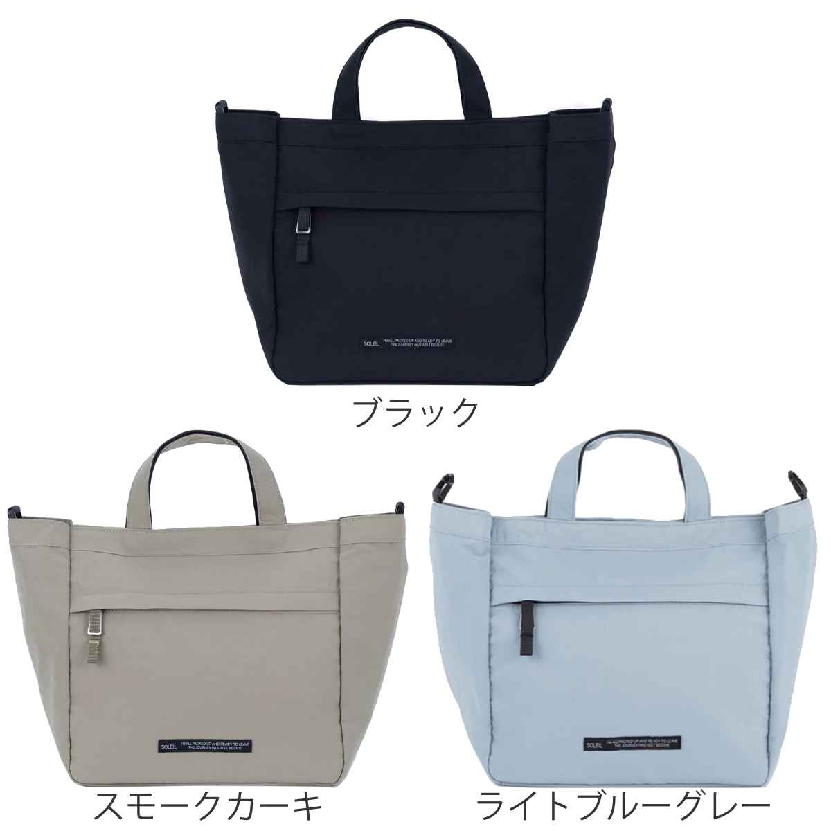 トートバック ショルダーバック 2WAY 軽量 ナイロン ソレイユ ( 斜めがけ 手提げ バッグ 鞄 かばん カバン バック メンズ レディース 大人 斜めがけバッグ ショルダーバッグ 肩掛けバッグ サコッシュ シンプル 男女兼用 ) 【スモークカーキ】