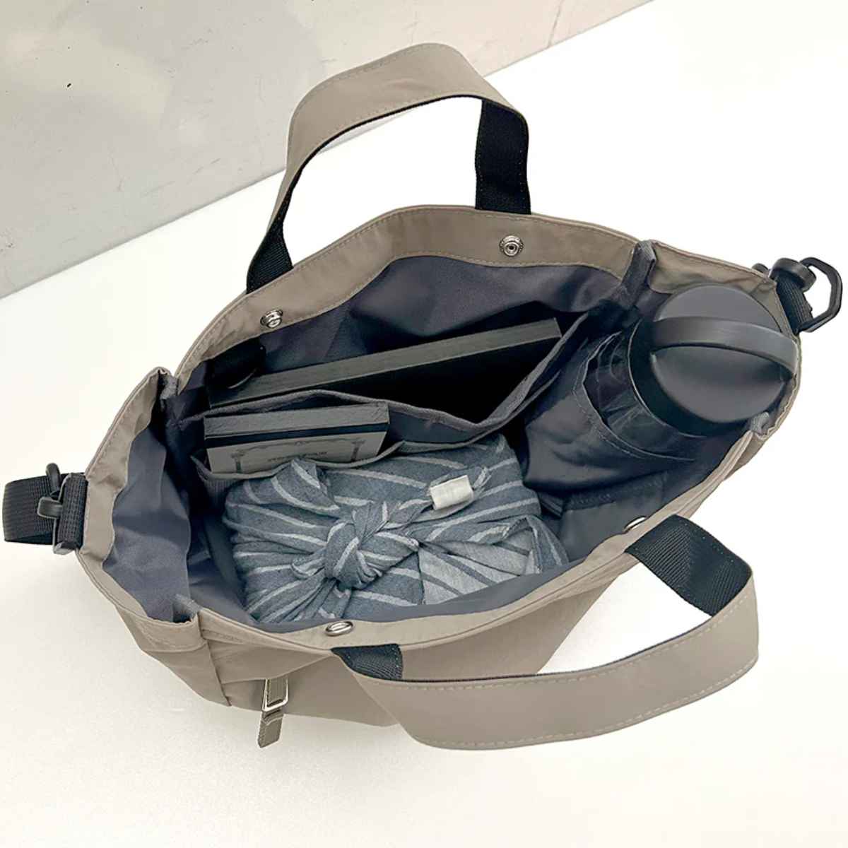 お弁当箱・水筒・ノート・本などを一気に収納できます。荷物をひとつにまとめられるので移動時もすっきり持ち歩けます。