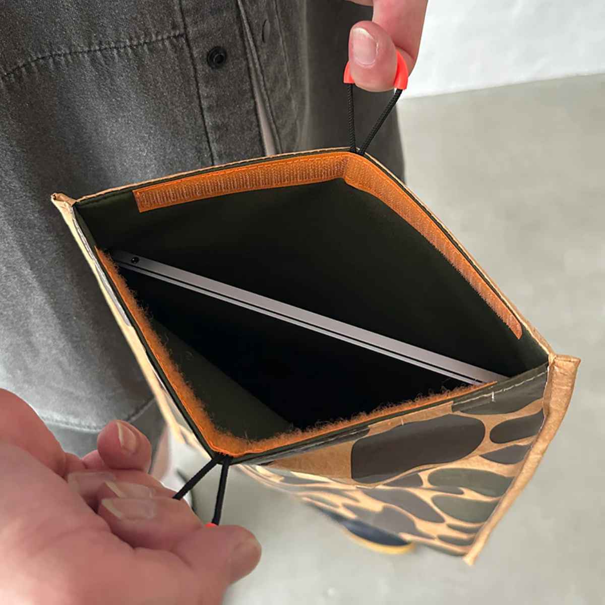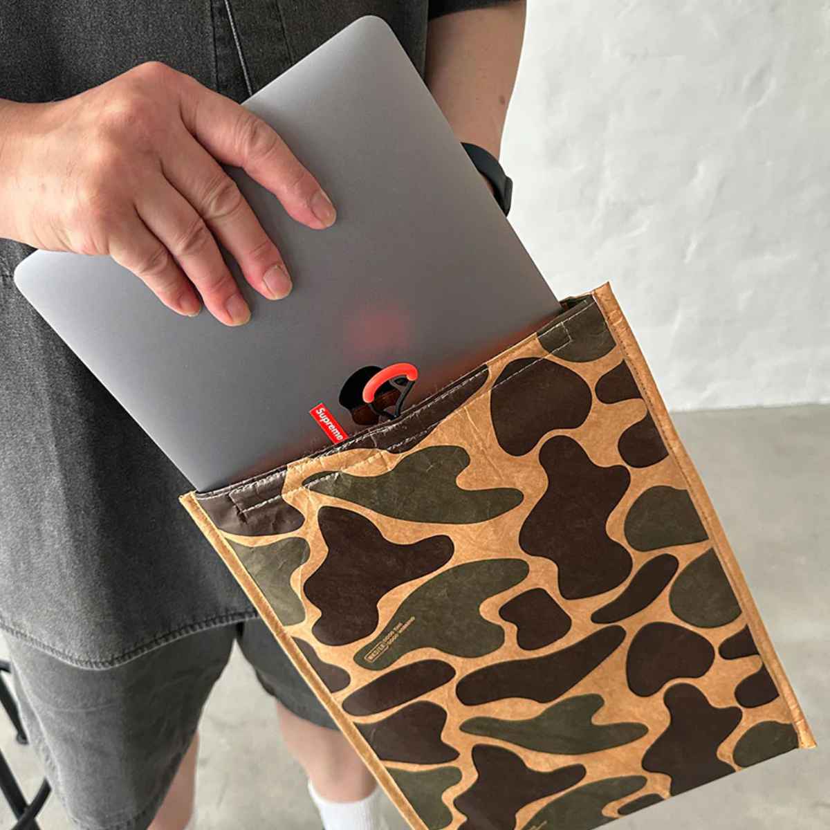 建材や宇宙服などにも使われているHDPE(高密度ポリエチレン)素材を使用しています。軽さ・強度・耐水性に優れており、クッション性もあるのでタブレット・ノートパソコン・CD・書類などの大切な物をしっかり守ります。
