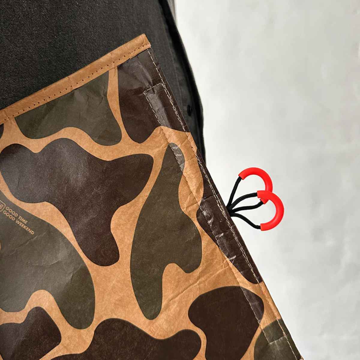 面ファスナー式で、持ち手に指を通して引くとサッと開けられます。開閉がスムーズで中身の出し入れも簡単です。