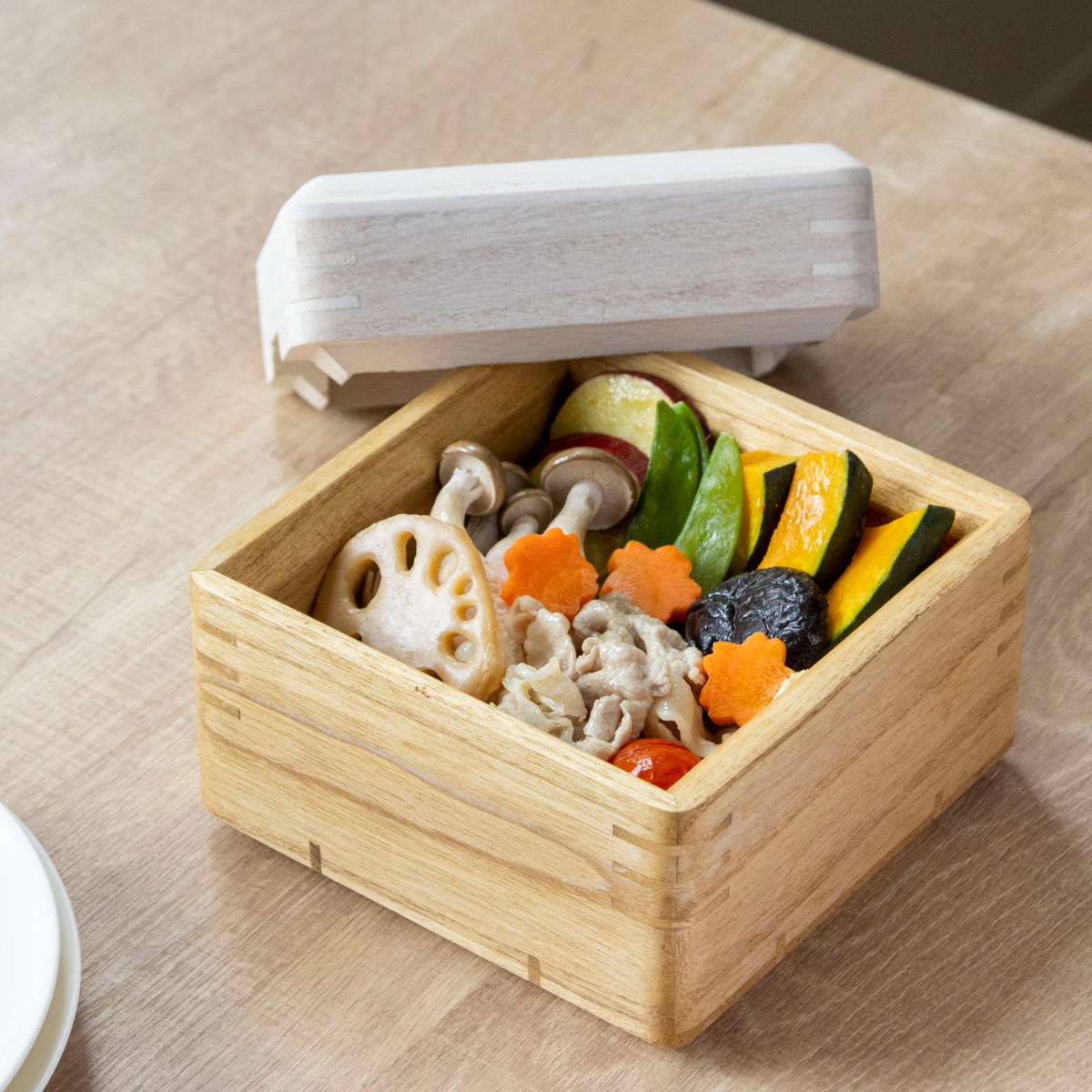 できあがったらそのまま食卓へ。白木の風合いを生かしたナチュラルなデザインは、食卓に心地よく馴染んで上質感を演出します。熱伝導率の低い桐製なので、本体自体は熱くなりにくく、チンしてすぐに取り出せるのも嬉しいポイント。