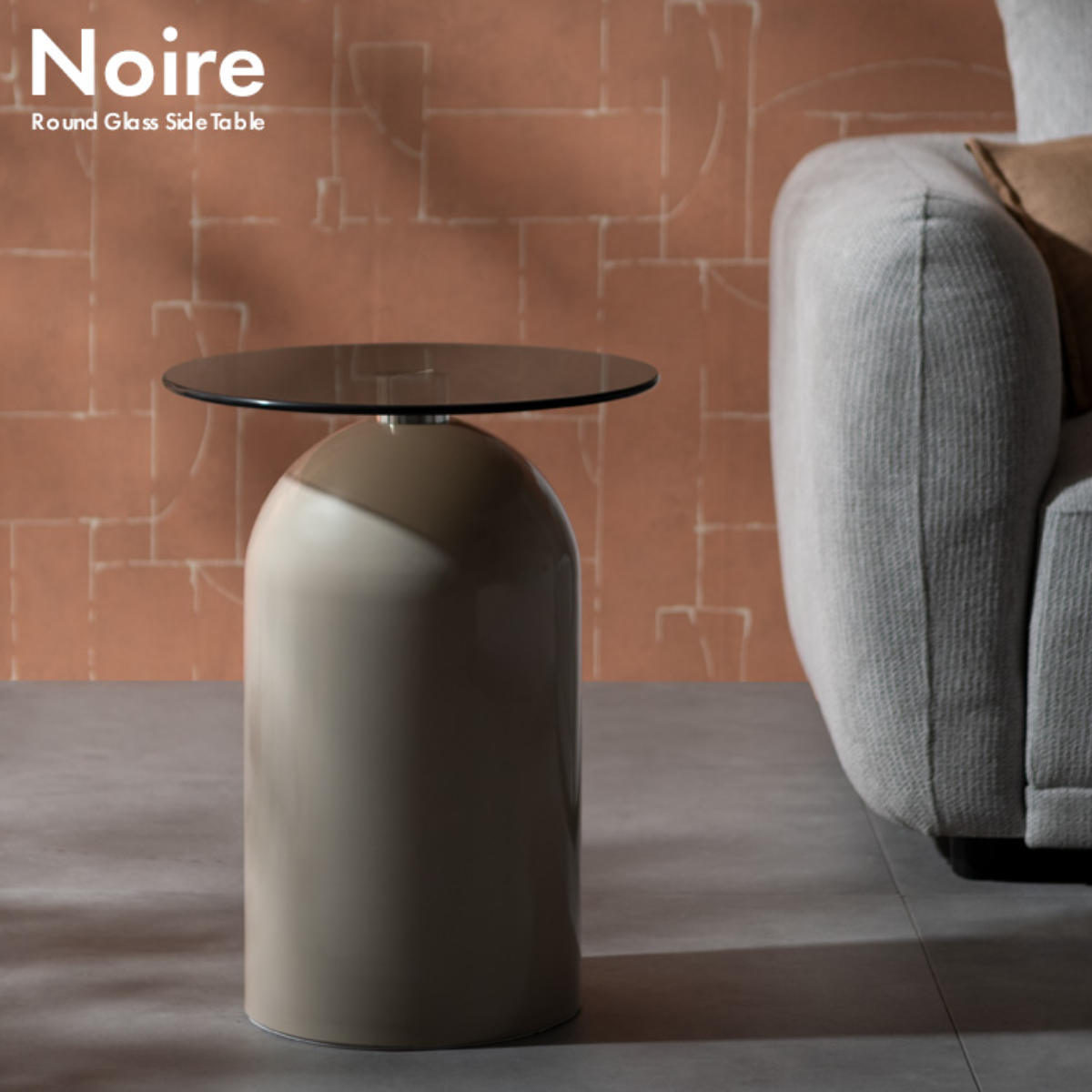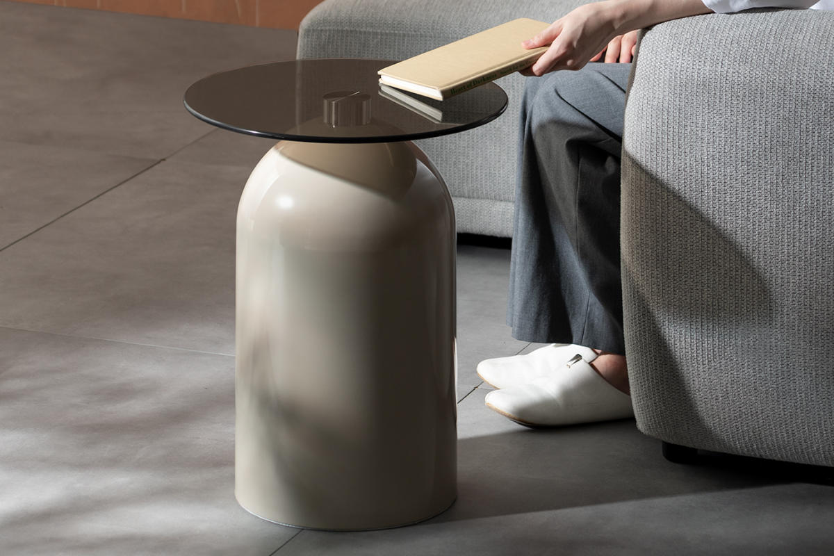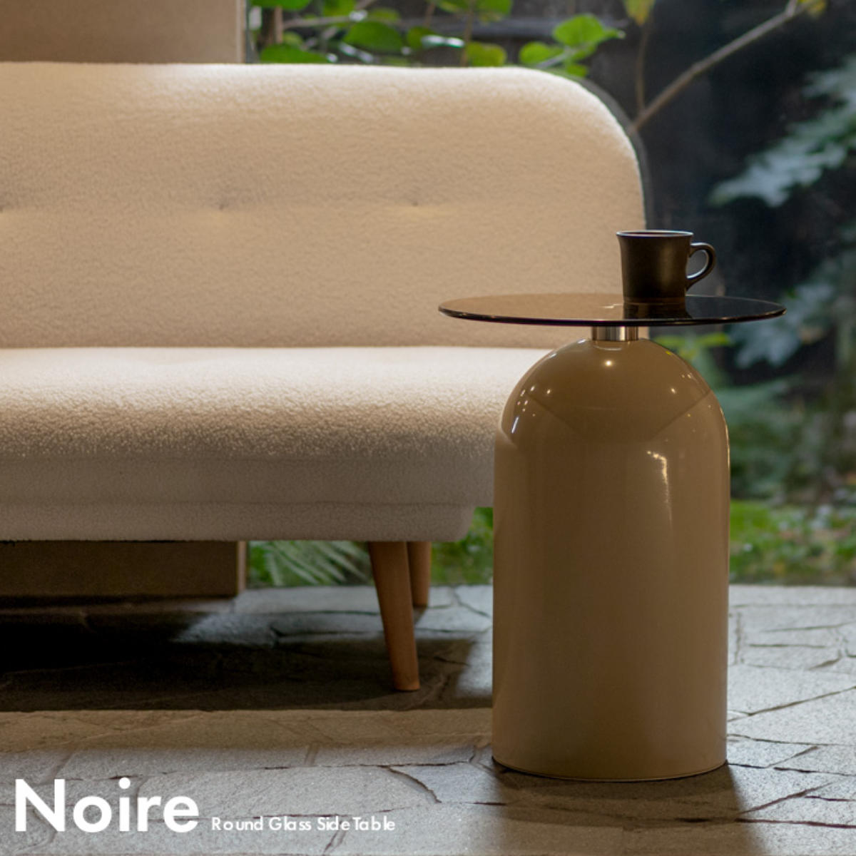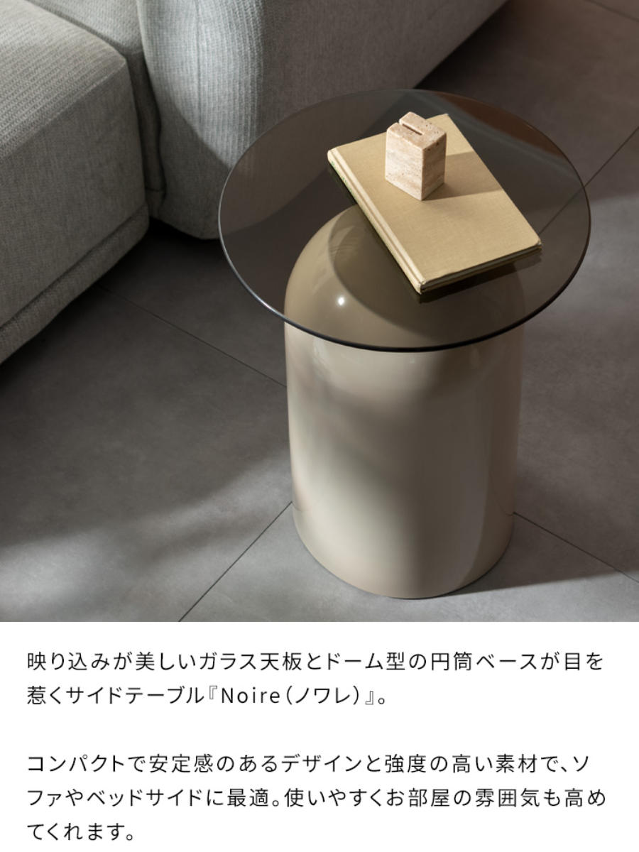 映り込みが美しいガラス天板と、柔らかな曲線を描くドーム型ベースが印象的なサイドテーブル「Noire(ノワレ)」。コンパクトで安定感があり、ソファやベッドサイドなど、さまざまなシーンで活躍します。置くだけでお部屋に上品なアクセントをプラスします。