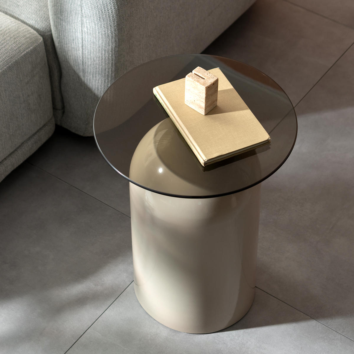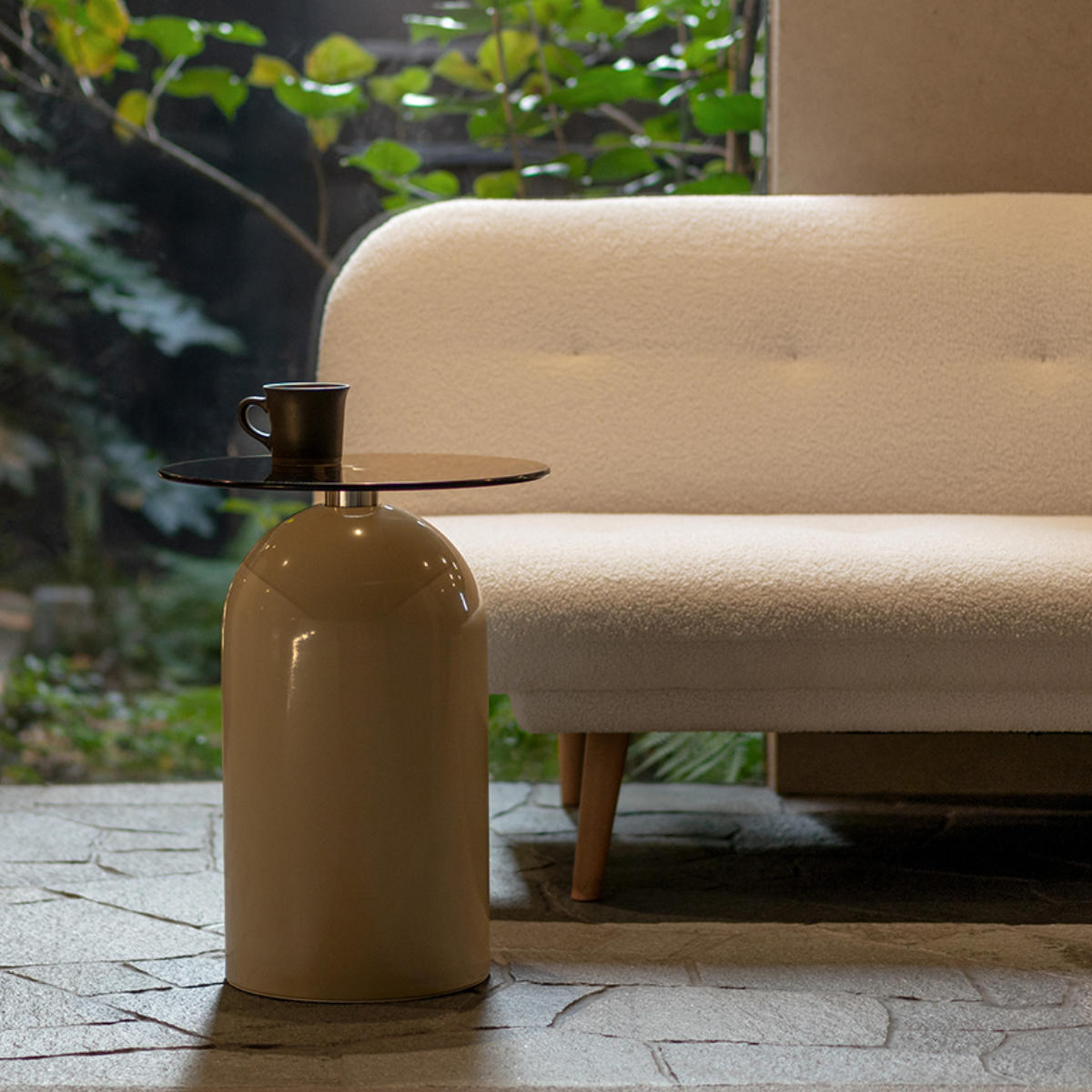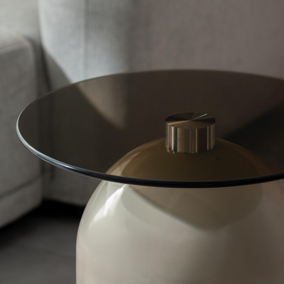 映り込みが美しいガラス天板と、柔らかな曲線を描くドーム型ベースが印象的なサイドテーブル「Noire(ノワレ)」。コンパクトで安定感があり、ソファやベッドサイドなど、さまざまなシーンで活躍します。置くだけでお部屋に上品なアクセントをプラスします。