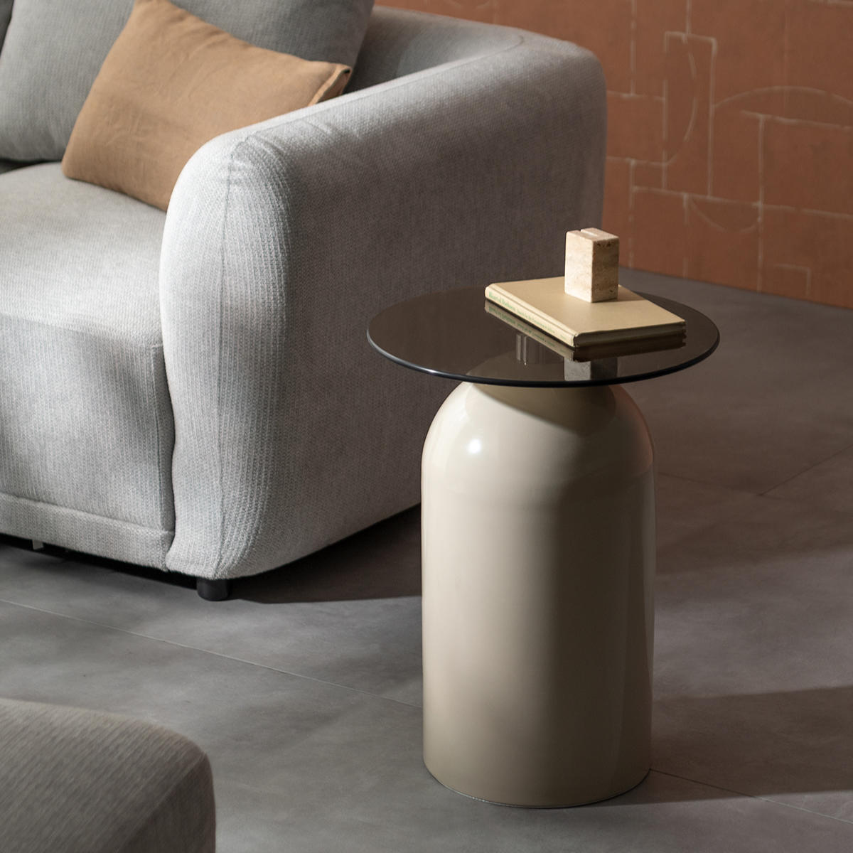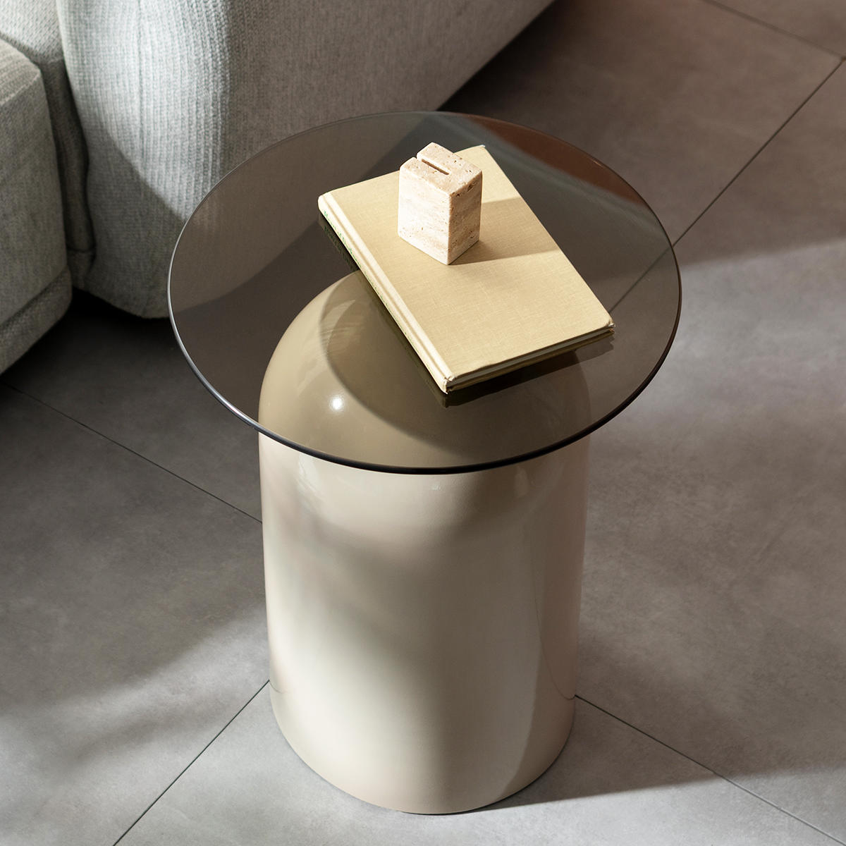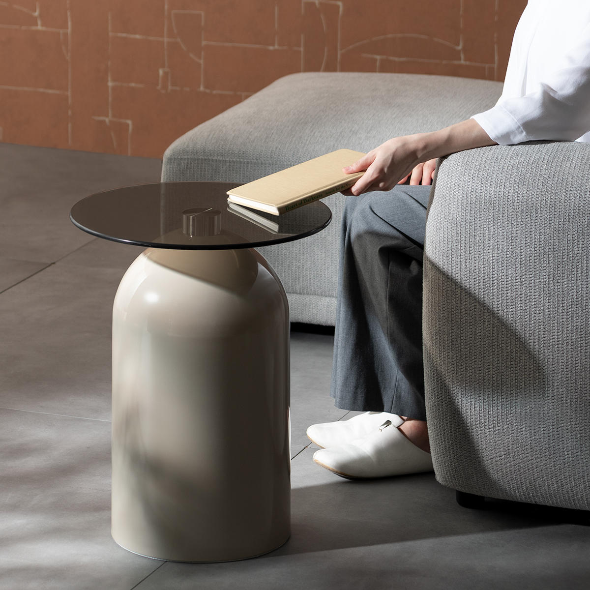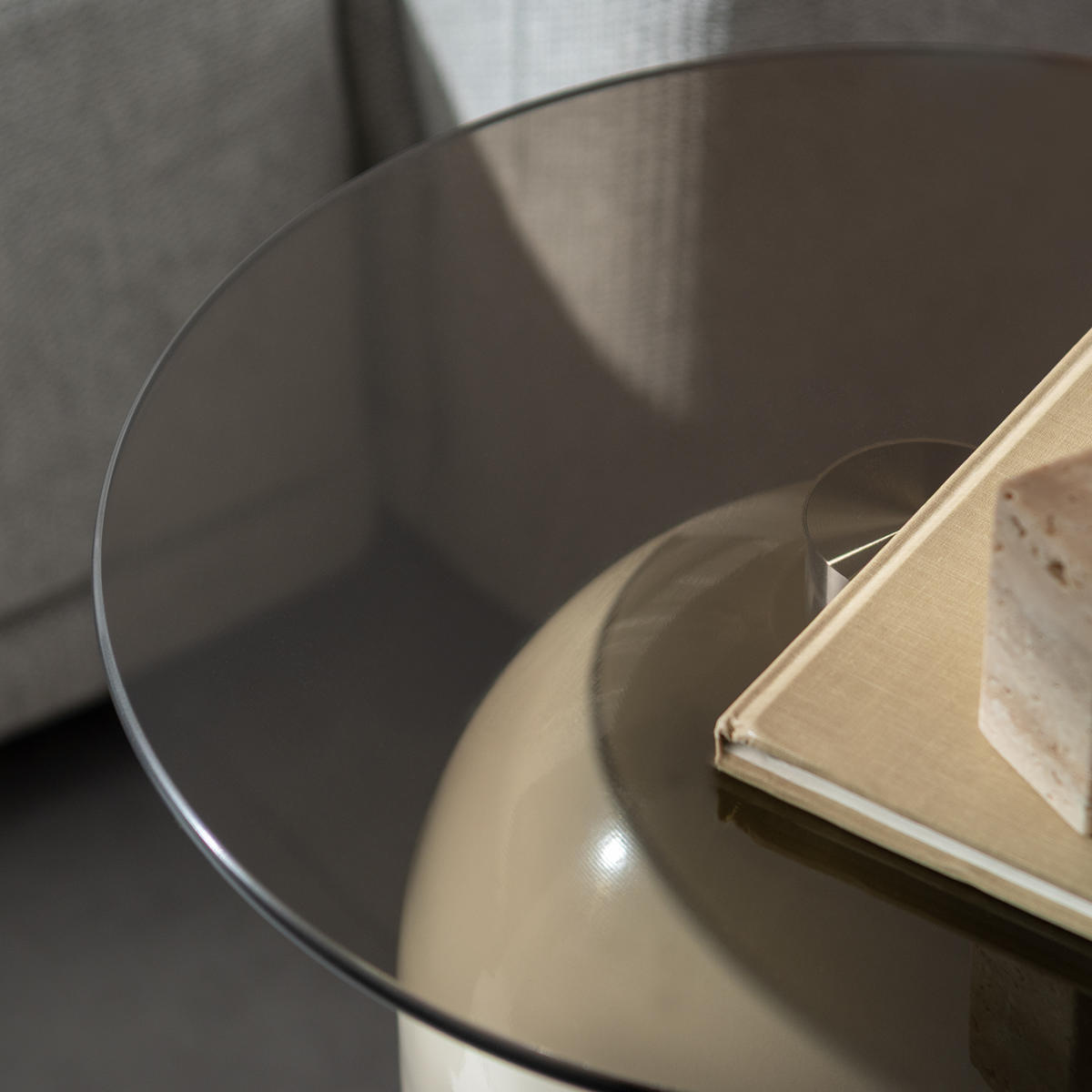 映り込みが美しいガラス天板と、柔らかな曲線を描くドーム型ベースが印象的なサイドテーブル「Noire(ノワレ)」。コンパクトで安定感があり、ソファやベッドサイドなど、さまざまなシーンで活躍します。置くだけでお部屋に上品なアクセントをプラスします。