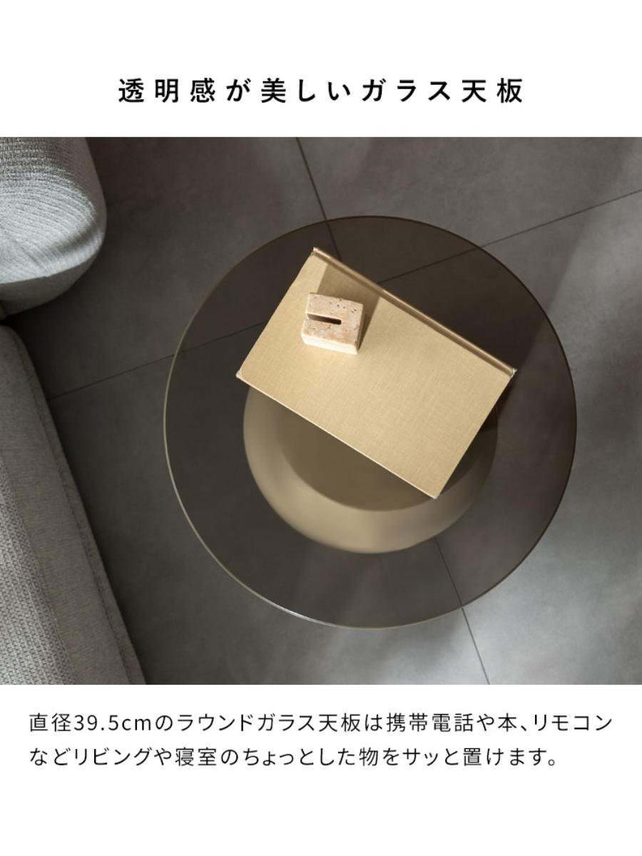 ![]() サイドテーブル 直径39.5cm ガラス天板 【▲このページの商品】 | ![]() サイドテーブル 直径38.5cm スチール天板 |