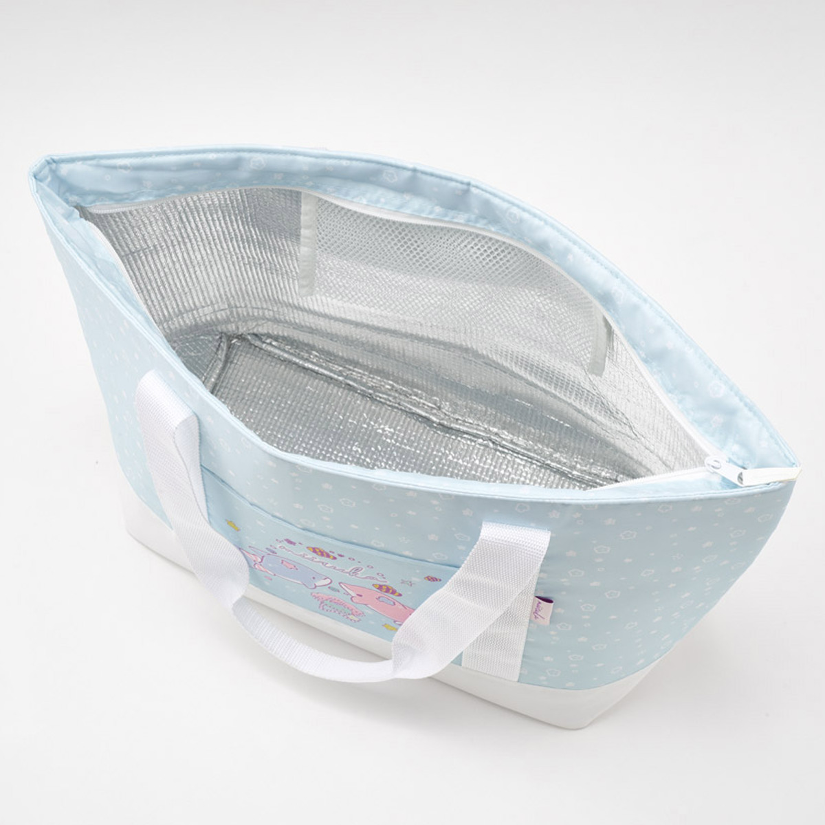 気分を上げてくれるゆるふわな世界観の「みいるか」のイラストがプリントされた保冷トートバッグです。