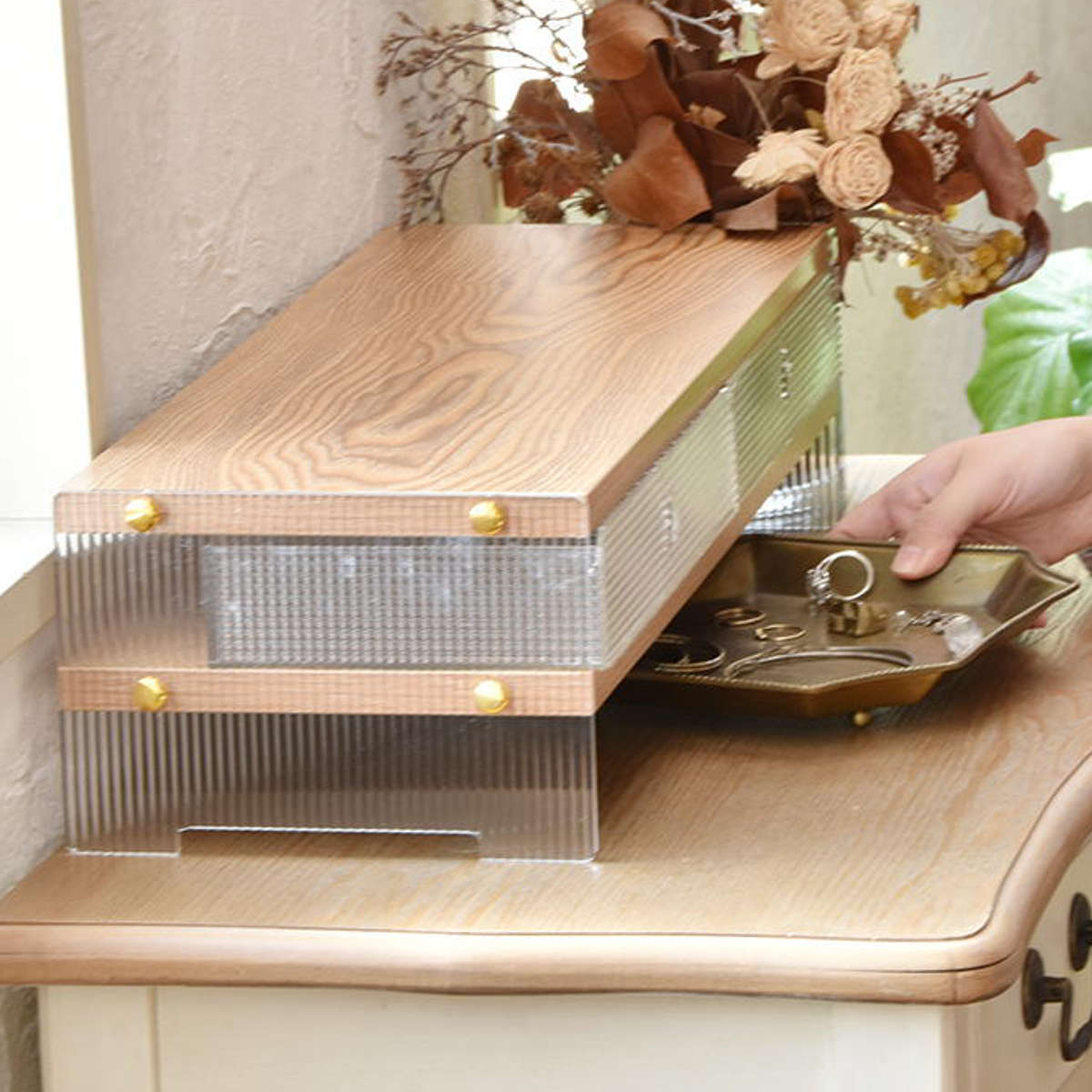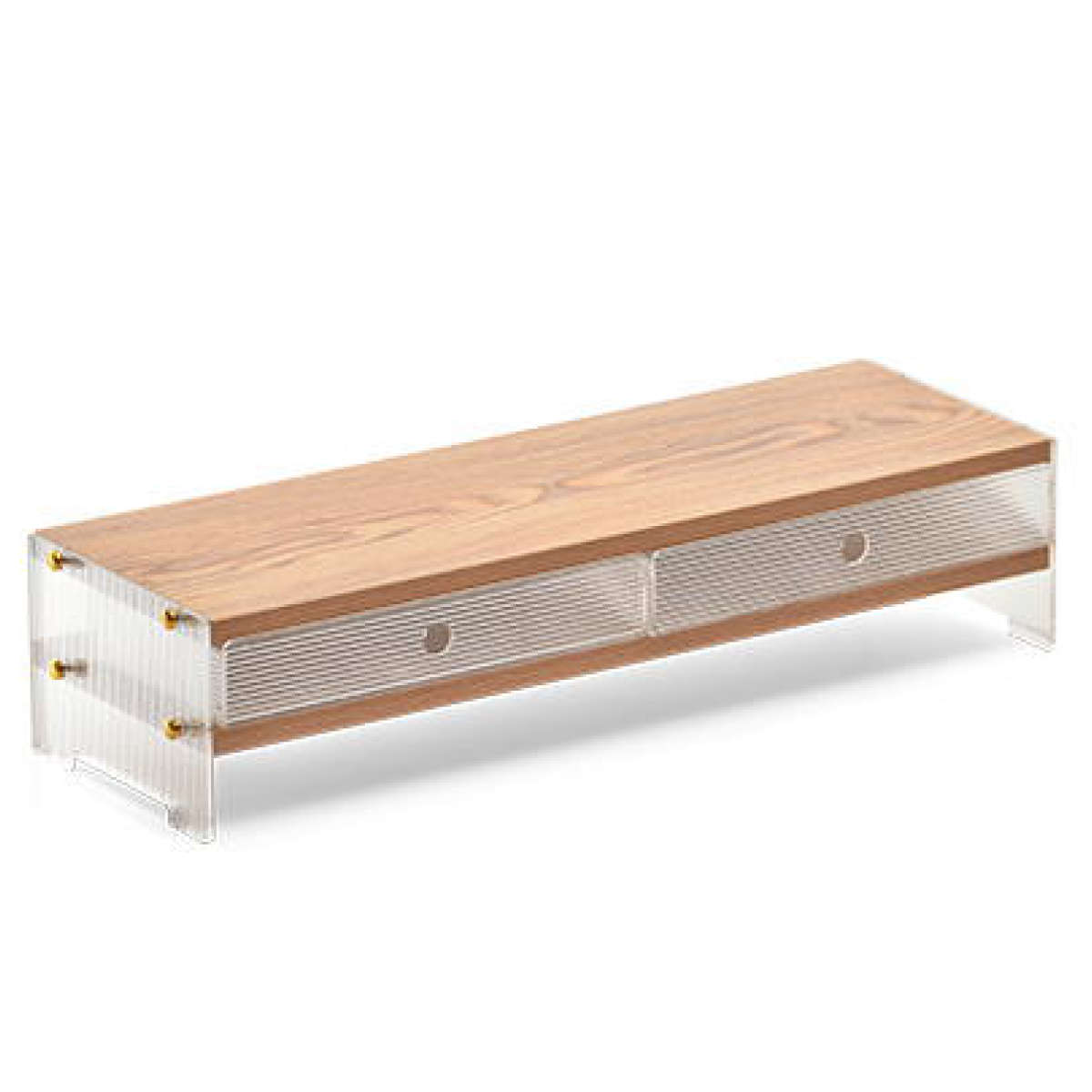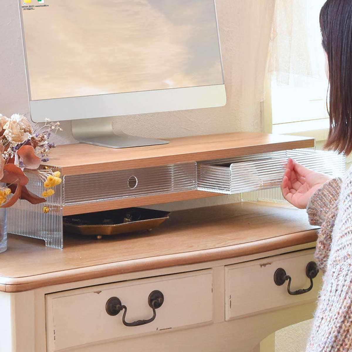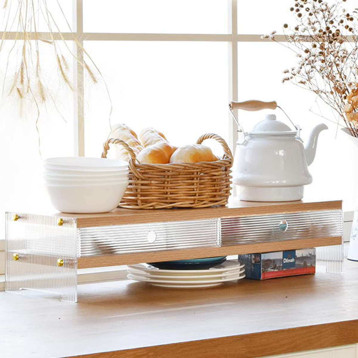 キッチンラック アクリル 収納棚 ワイドタイプ ( キッチン収納 ディッシュラック 収納ラック カウンター上 シェルフ 引出し 木目調 卓上 モニター台 デスク収納 ディスプレイ リブ 透け感 耐久性 丈夫 おしゃれ )のレビュー